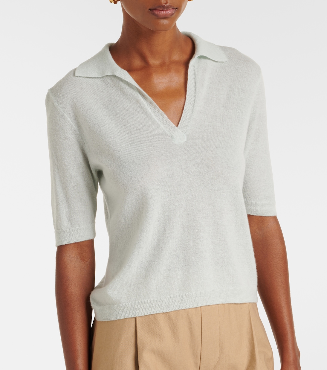 Рубашка-поло из кашемира и шелка Vince, Aqua Dew