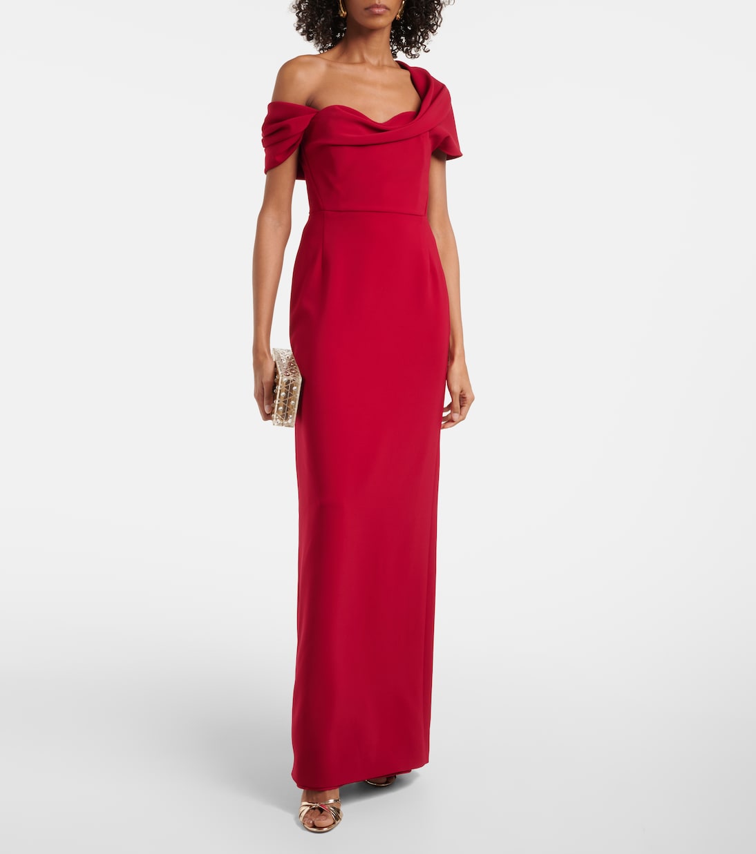 Платье из крепа с драпировкой и открытыми плечами Carolina Herrera, Currant