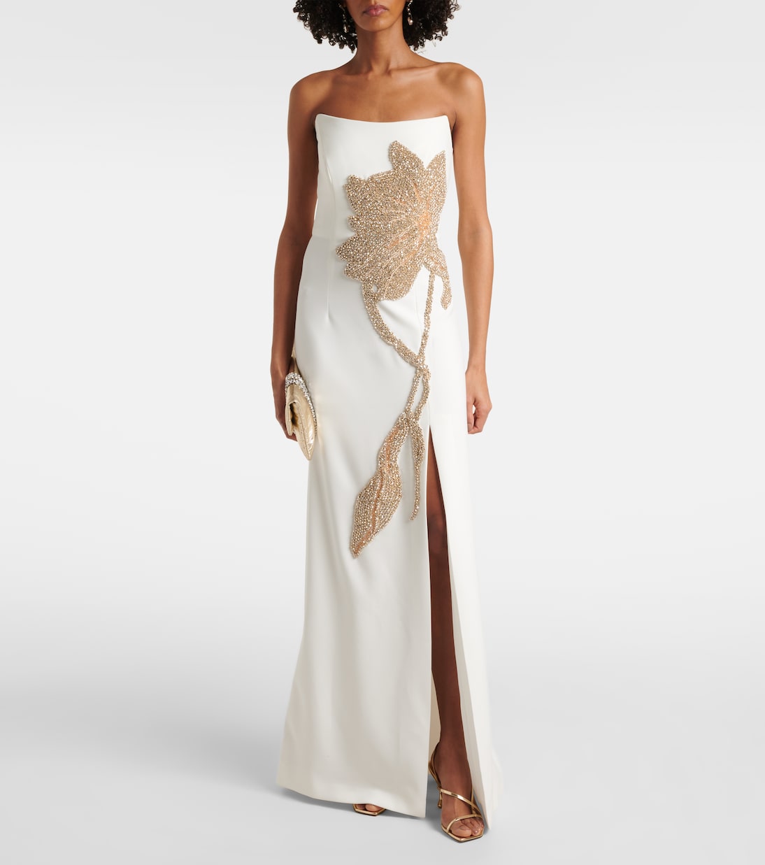 Платье-бюстье Fara из крепа с декором Costarellos, слоновая кость