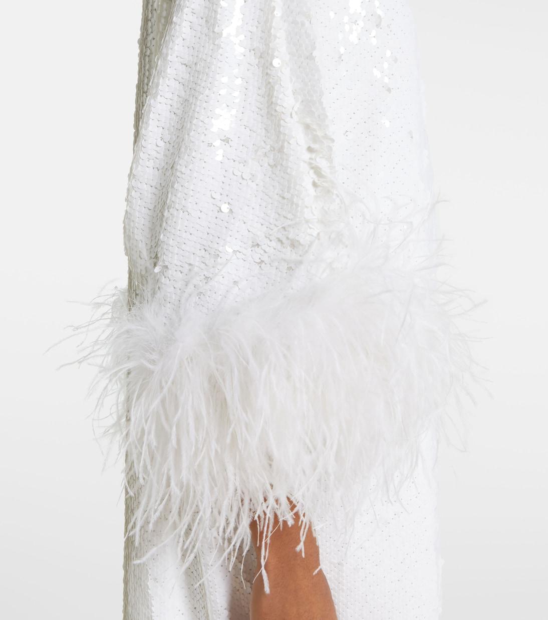 Длинное платье с отделкой из перьев Self-Portrait, белый 88 758₽