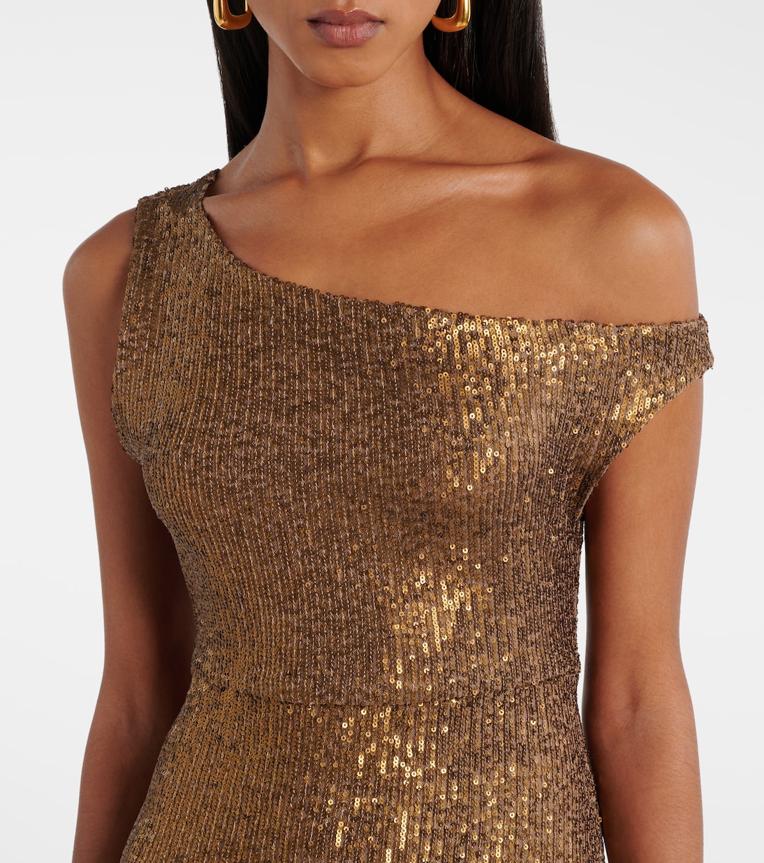 Платье на одно плечо, расшитое пайетками Norma Kamali, бронзовый