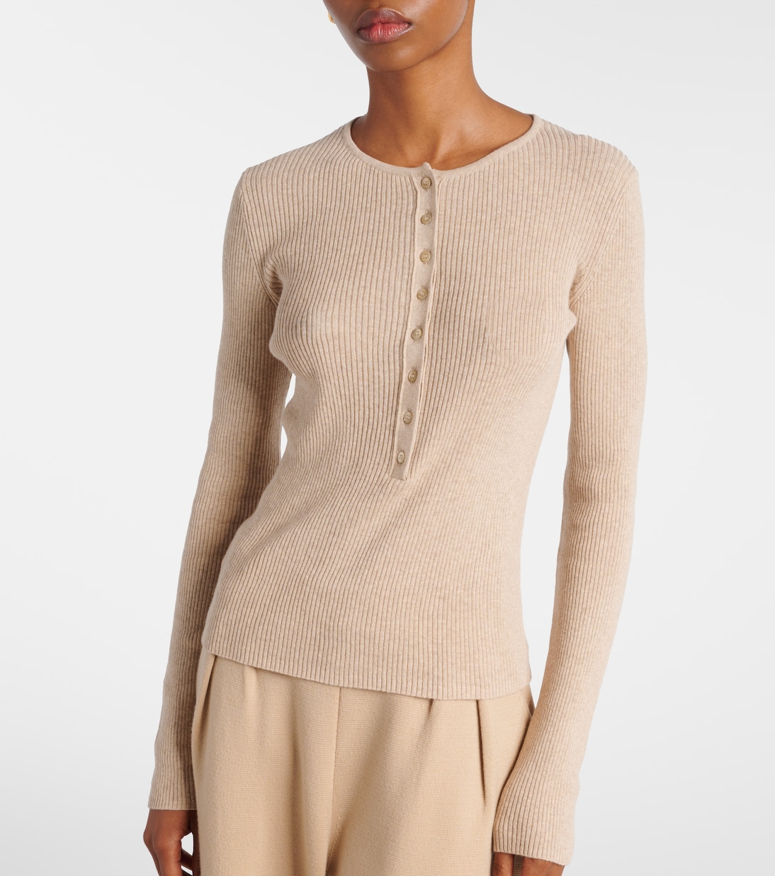 Рубашка хенли из хлопка и кашемира ара Staud, Stone