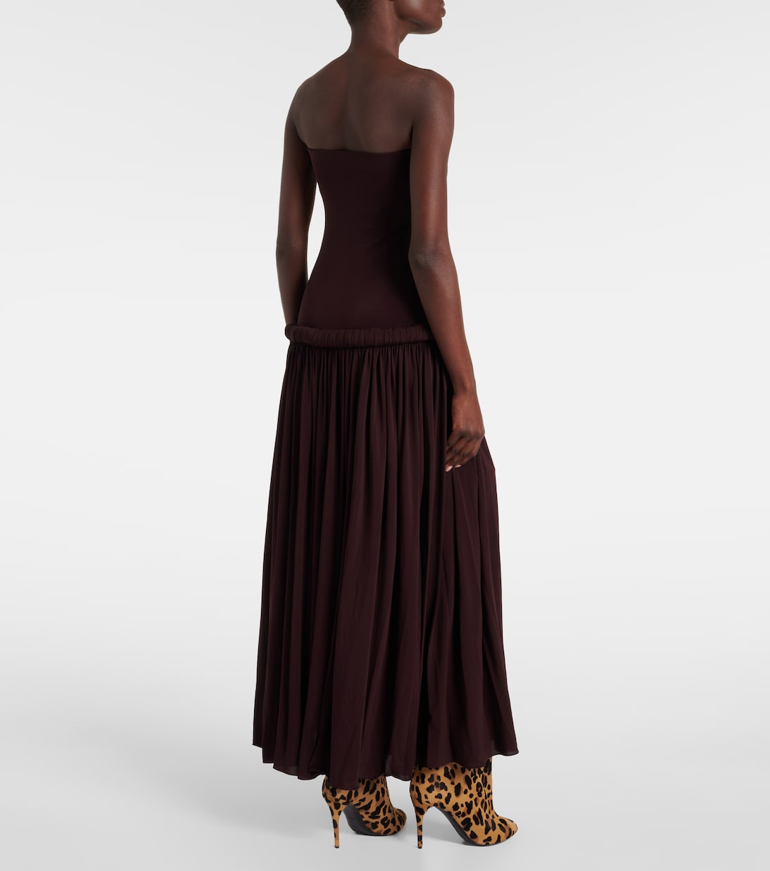 Платье макси из джерси со сборками и без бретелек Alaïa, Acajou