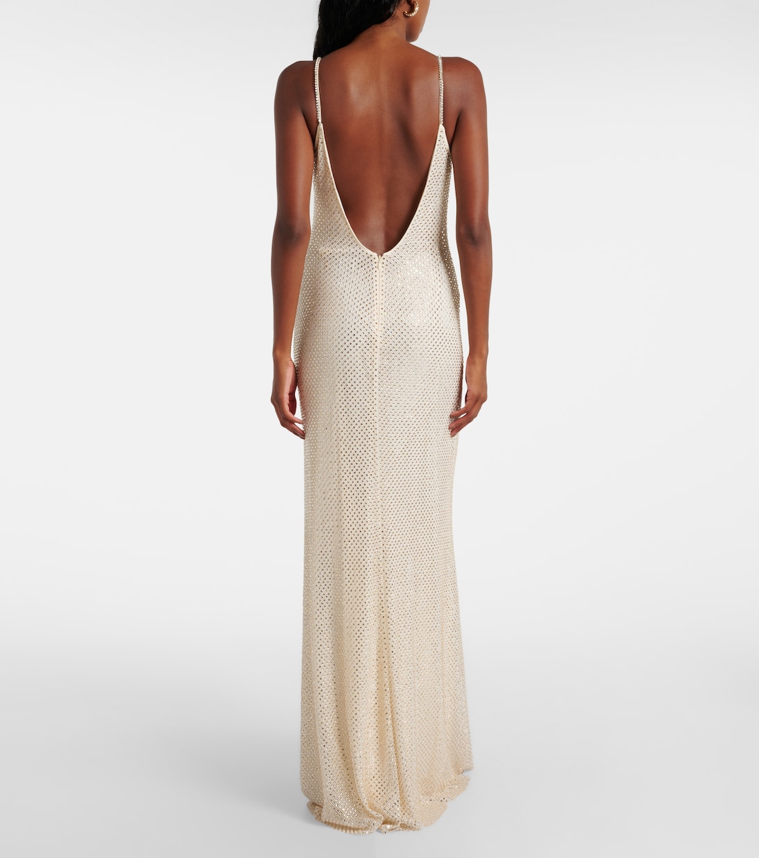 Платье макси из сетки, украшенное стразами Self-Portrait, кремовый 76 449₽