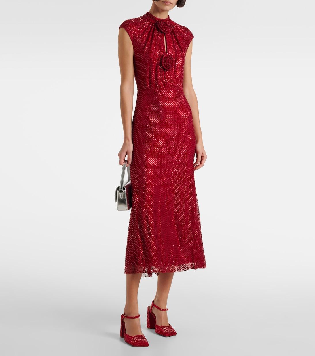 Платье-миди в сеточку с декором Self-Portrait, красный