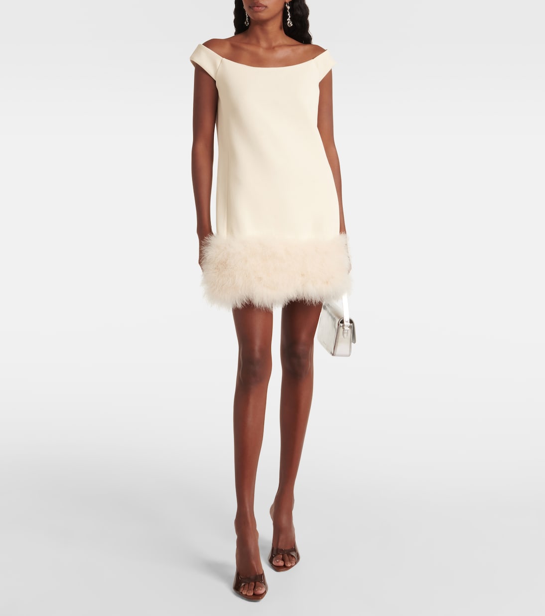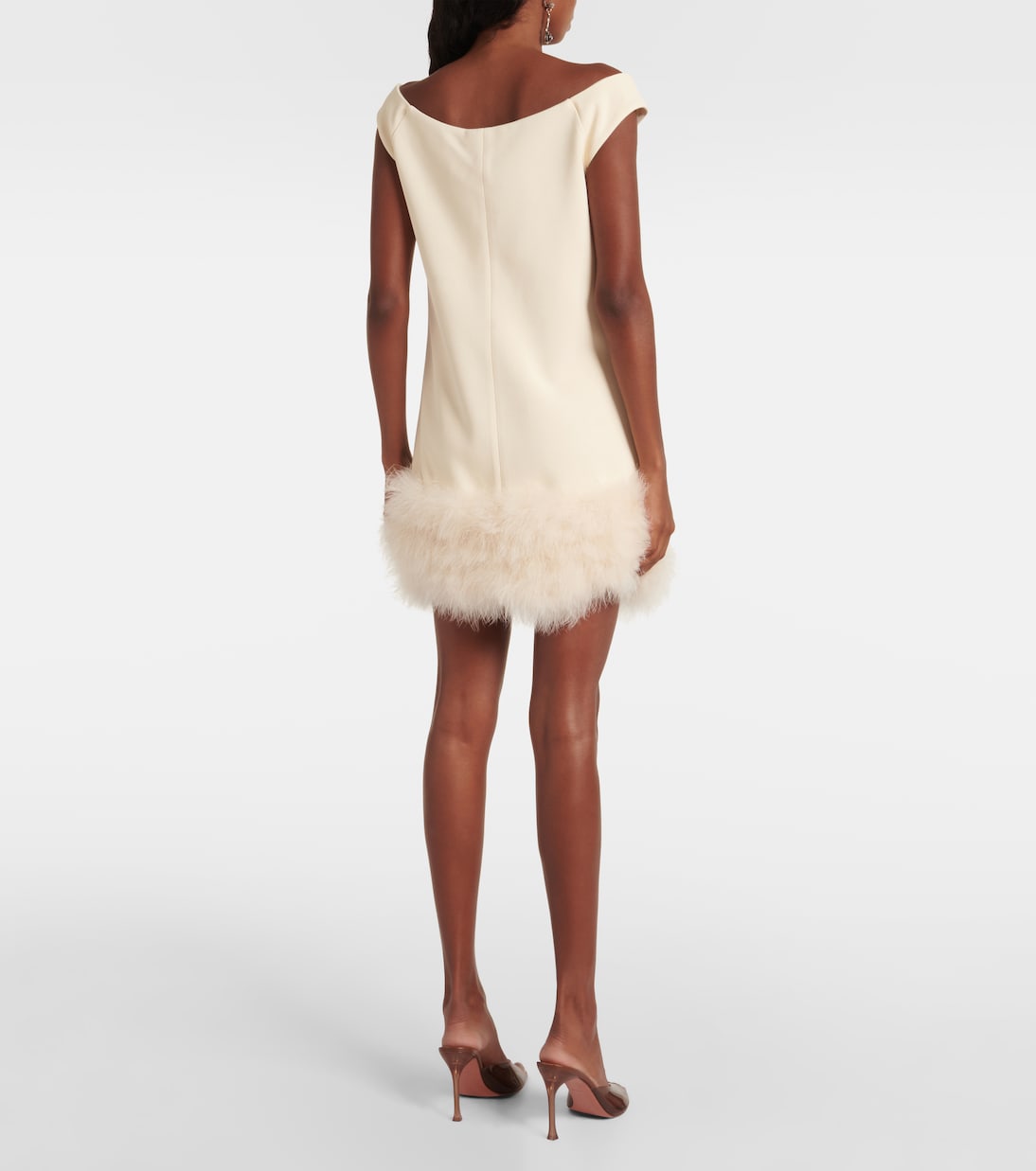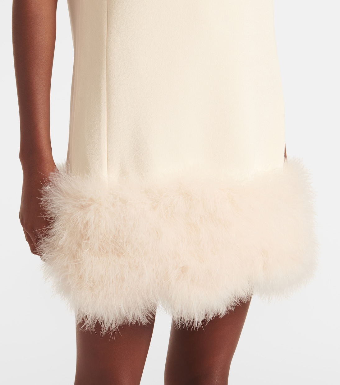 Мини-платье из крепа с отделкой из перьев Blumarine, слоновая кость