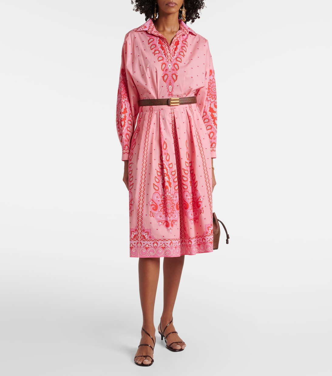 Платье миди из смесового хлопка с принтом Etro, Print On Pink Base