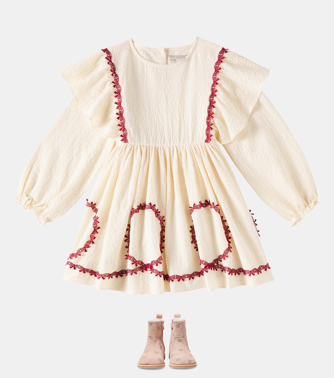 Платье из хлопка с вышивкой Konges Sløjd, Buttercream