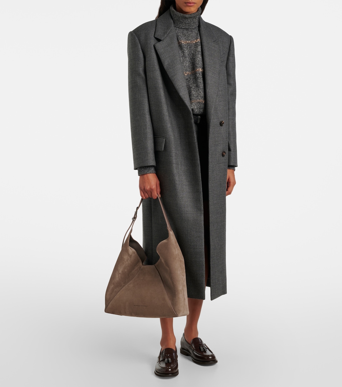 Сумка через плечо BC Duo из замши Brunello Cucinelli, Ossido
