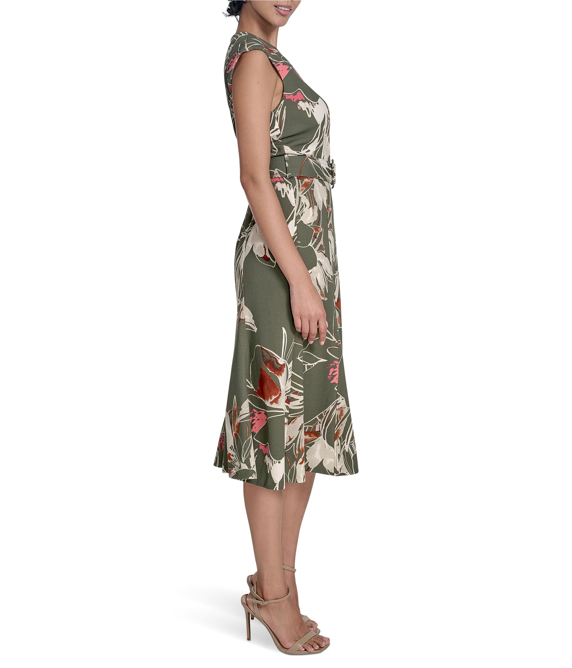 Платье Calvin Klein Printed Scuba Crepe Belted Midi, Antq/White/Multi