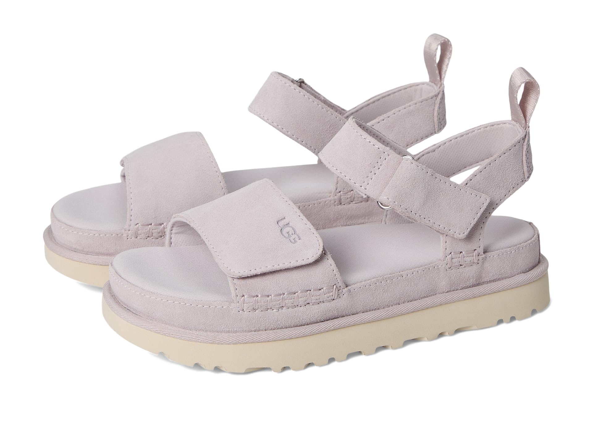 • Выбирайте правильный путь в босоножках на платформе UGG Goldenstar из бархатистой замши. Регулируемые ремешки обеспечивают идеальную посадку, а мягкая стелька из пеноматериала смягчает каждый шаг.