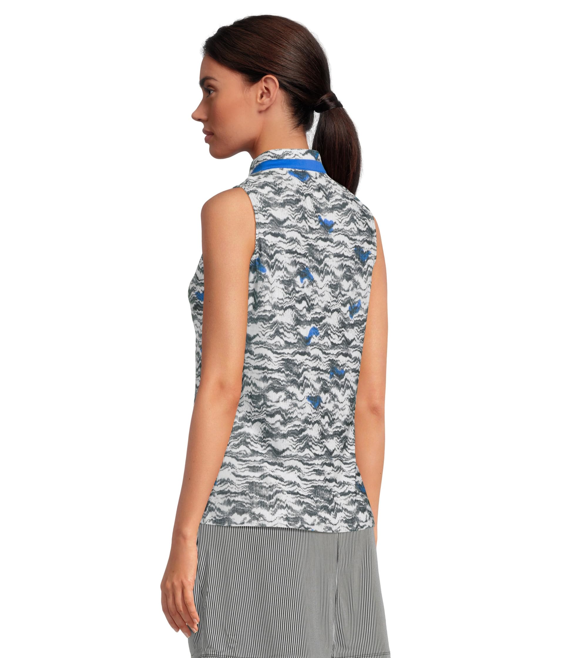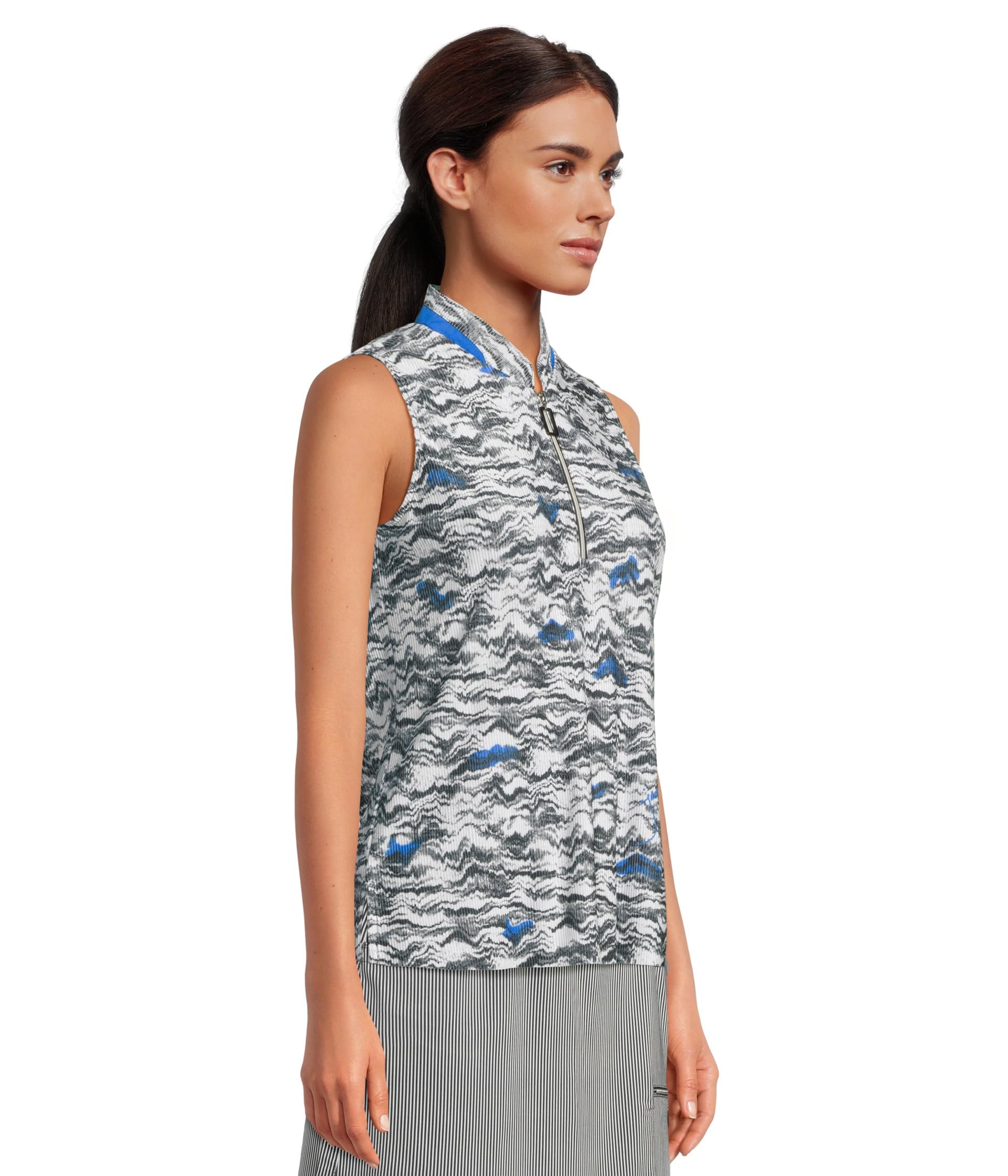 • Топ без рукавов Jamie Sadock Wave Print Crunch Fabrication с забавным принтом по всей длине и легкой дышащей конструкцией сочетает в себе стиль и комфорт. Растягивающийся топ в стиле pull-on с воротником-стойкой "мандарин" с глубокой застежкой-молнией спереди и без рукавов. Легкая, дышащая эластичная ткань crunch performance обеспечивает легкость движений.