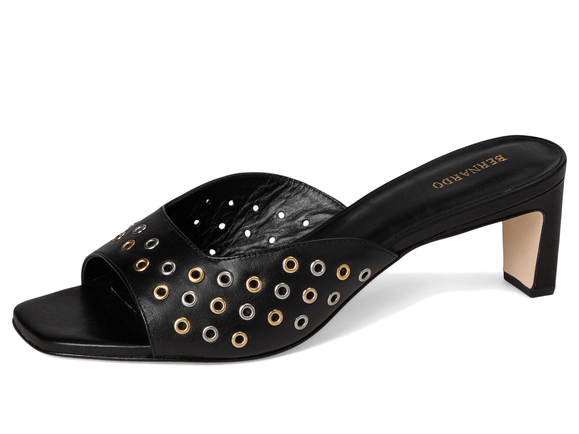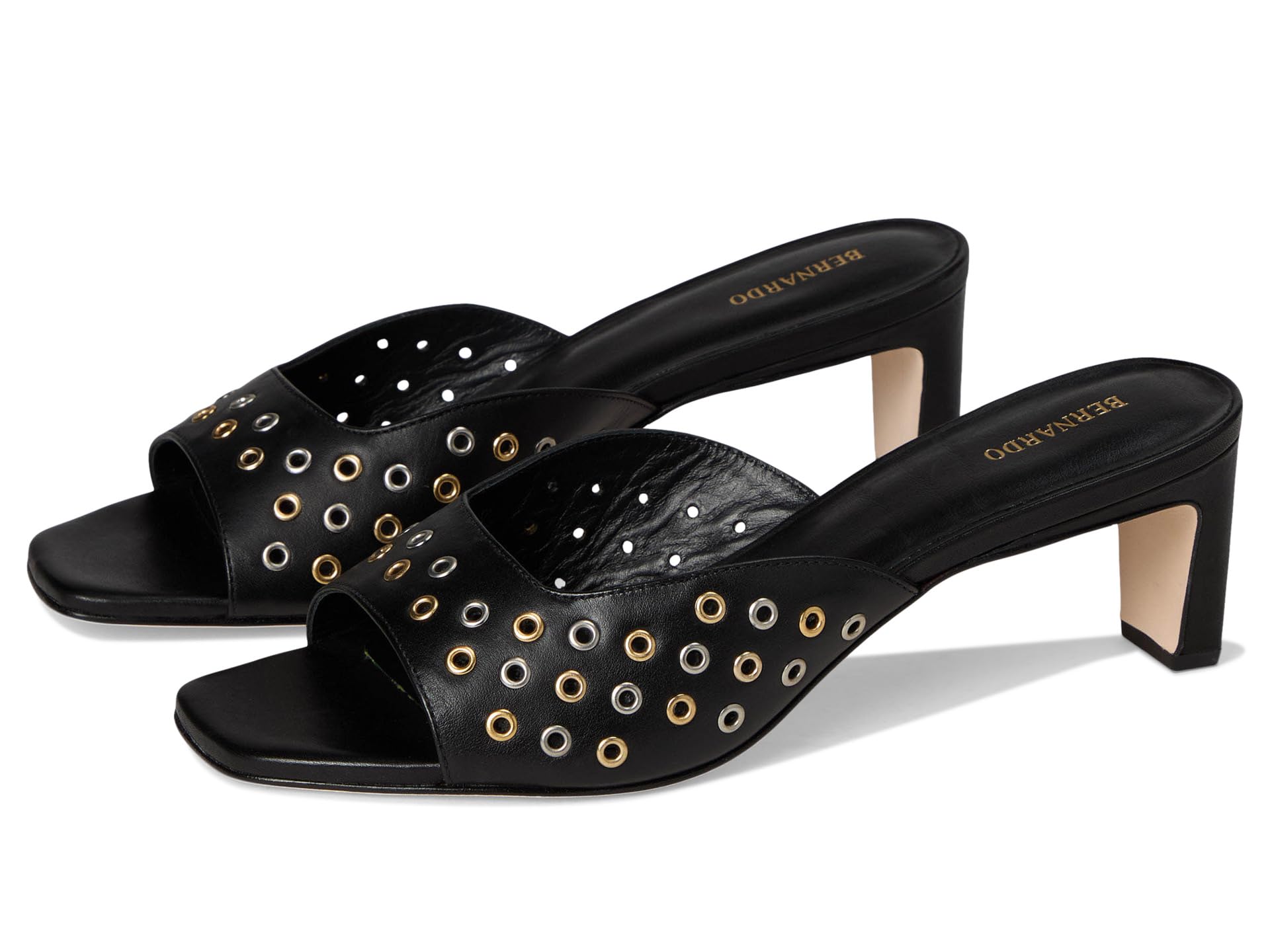 • Будьте смелее. Эти мюли Bernardo Cenza Grommet с открытым носком, строгими линиями в сочетании с дерзкими люверсами по всей поверхности создают эффектный образ. Носите их на свидании или в компании подруг. Верх, подкладка и стелька изготовлены из кожи. Эти босоножки с открытым квадратным носком, блочным каблуком и фирменной символикой на стельке.