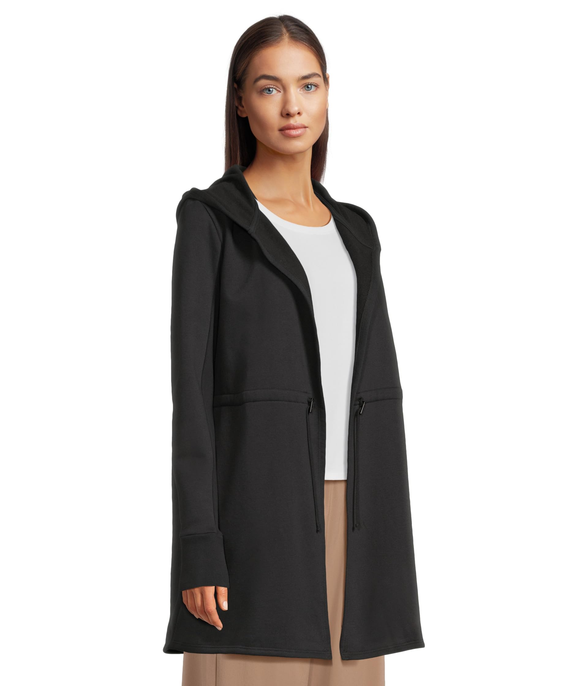 • Стильно расслабьтесь в куртке beyond Yoga On The Go. Благодаря конструкции с капюшоном, открытому силуэту спереди и регулируемой завязке на талии. Имеет два накладных кармана для рук в швах для дополнительного удобства.