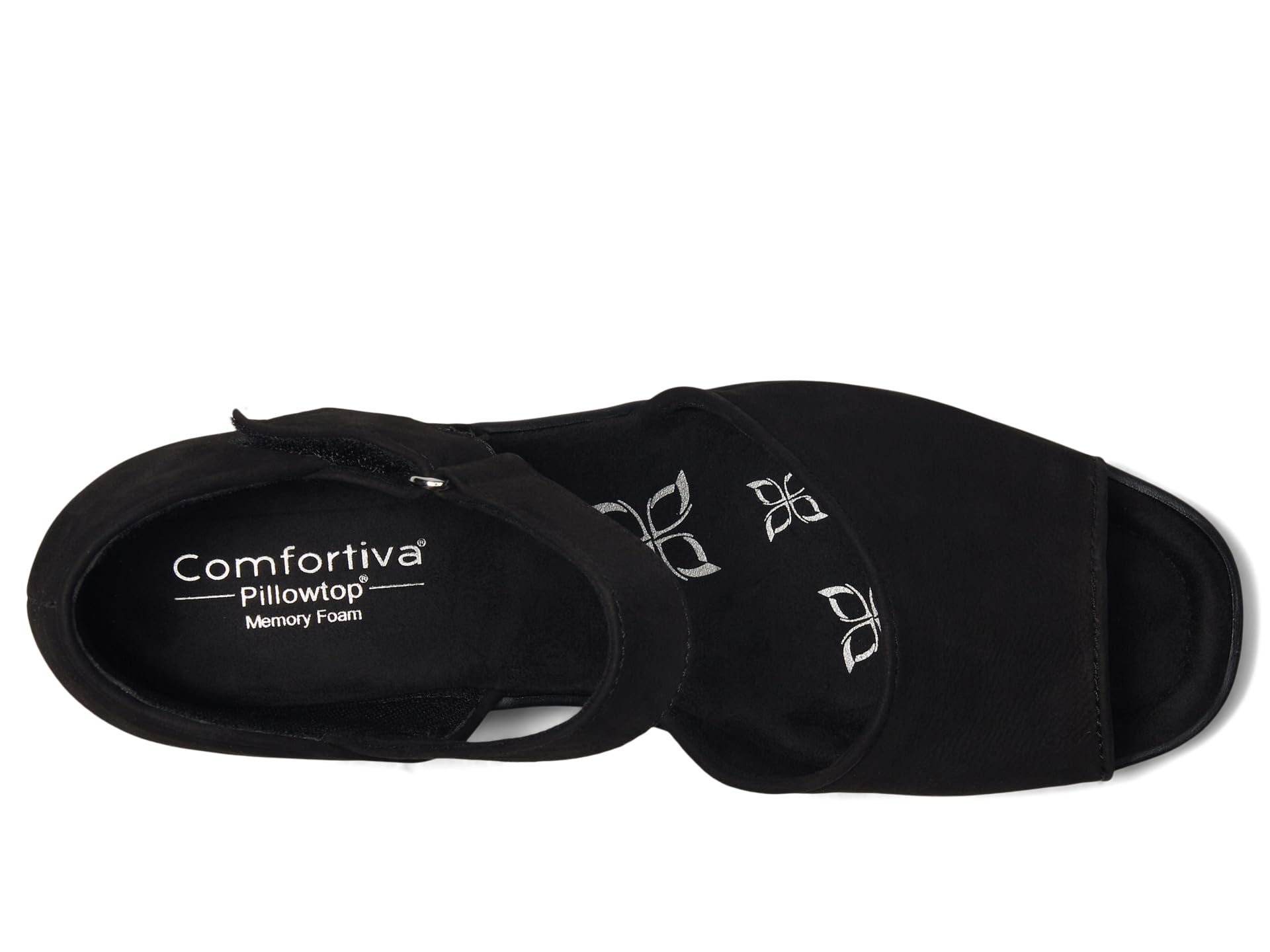 • Босоножки Comfortiva Daniella - это двухкомпонентные сандалии с легкой танкеткой, подходящие для разных случаев. Эти босоножки на каблуке изготовлены из пенопластовой стельки, микрозамши с эффектом памяти и искусственной замши. Кожаный верх застегивается на липучку для надежной посадки.