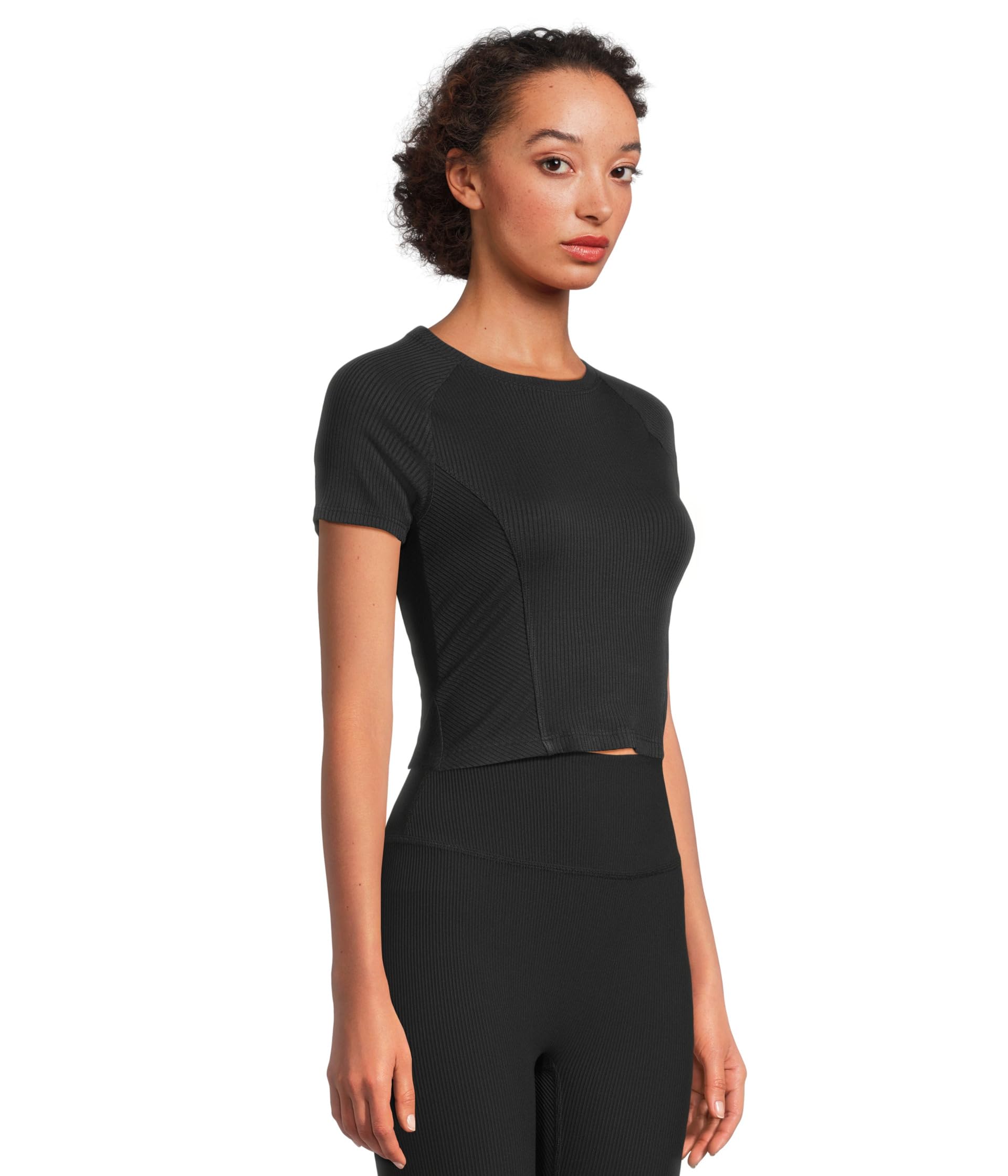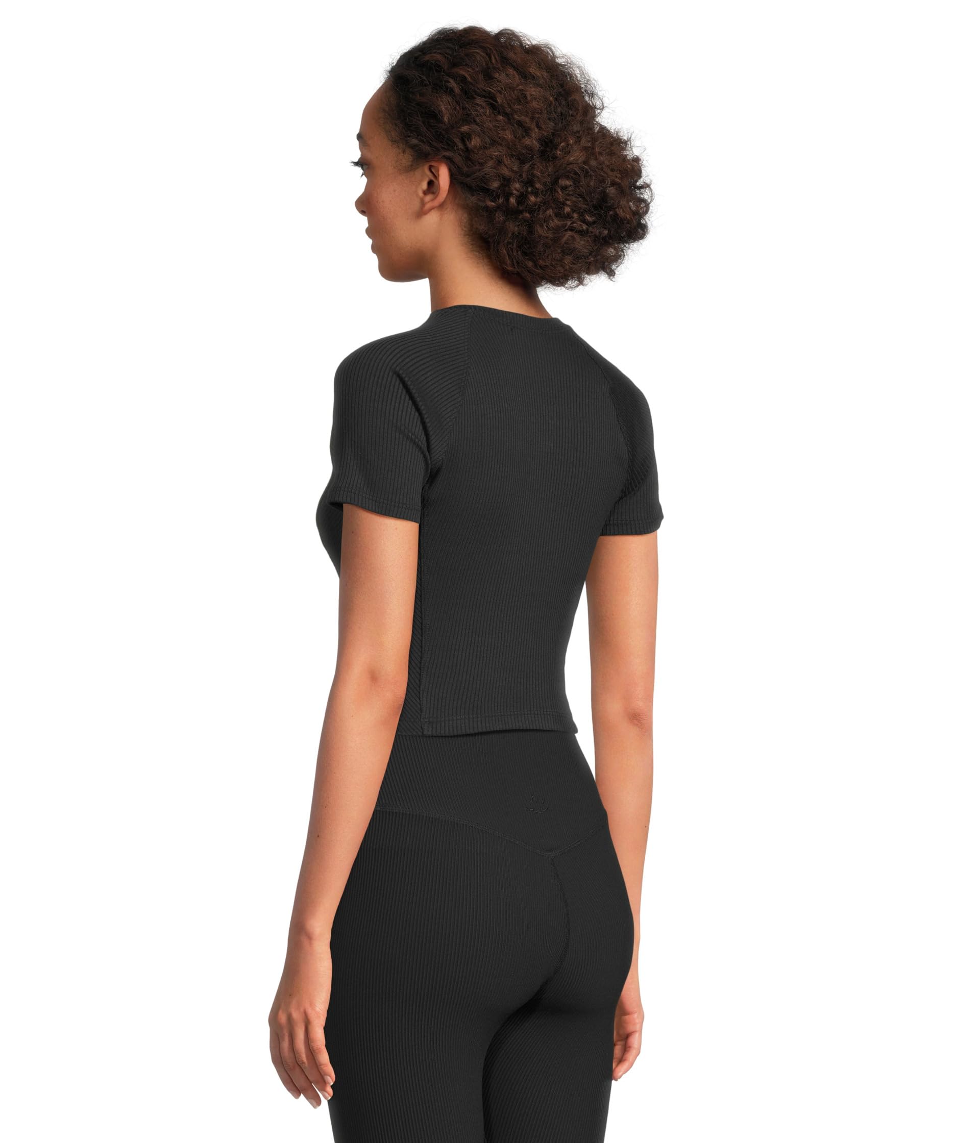 • Укороченная футболка Beyond Yoga - универсальный элемент гардероба, идеально подходящий для создания нарядов, которые легко переходят от рабочих дней к выходным. Сшитое из мягкой ткани в рубчик, оно мягко облегает ваше тело, подчеркивая и обтекая ваш силуэт, обеспечивая удобную посадку. В дизайне использованы вставки с направленными ребрами, придающие изделию утонченную текстуру, высокий круглый вырез горловины, придающий ему современный вид, и фигурные рукава реглан, которые придают изделию стильную индивидуальную отделку.