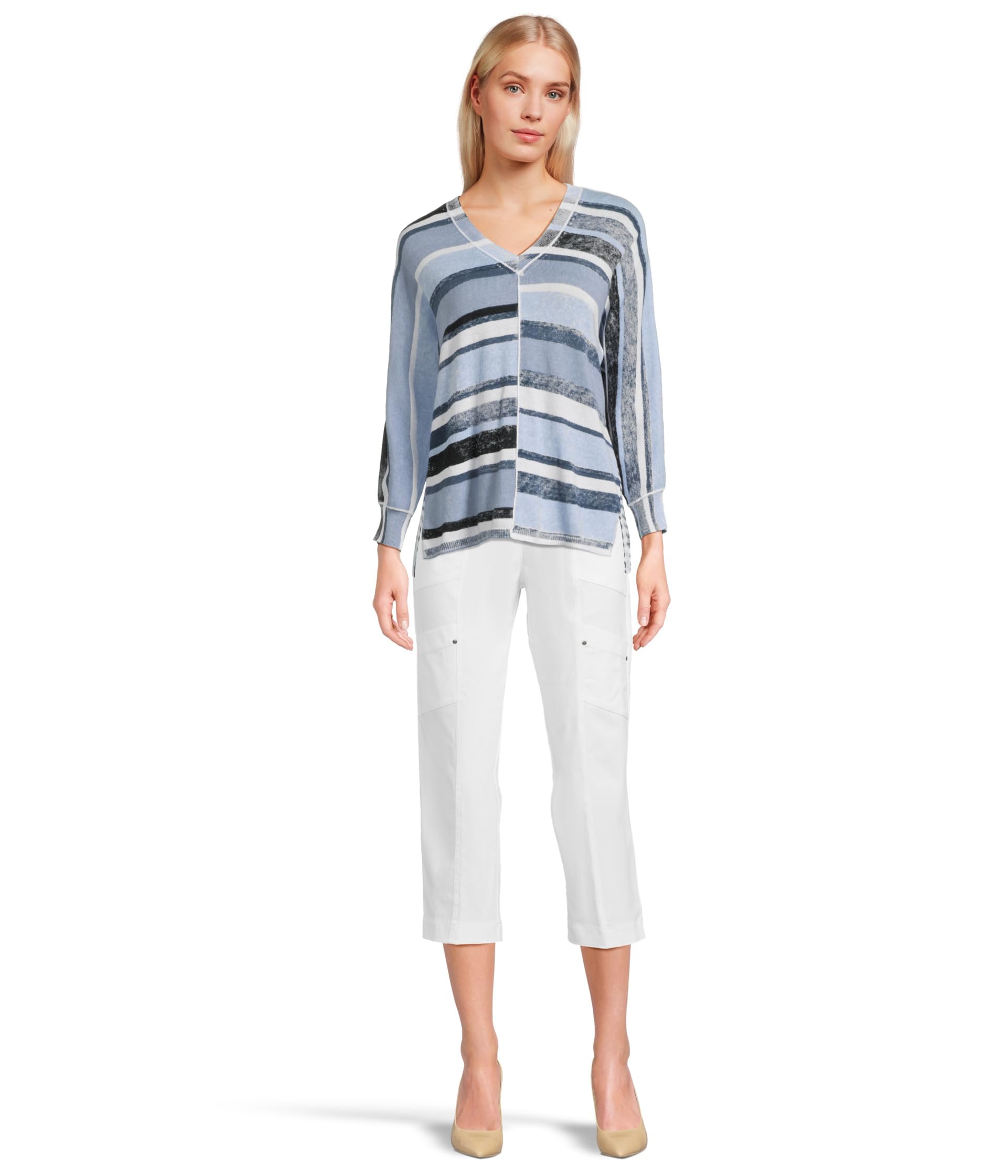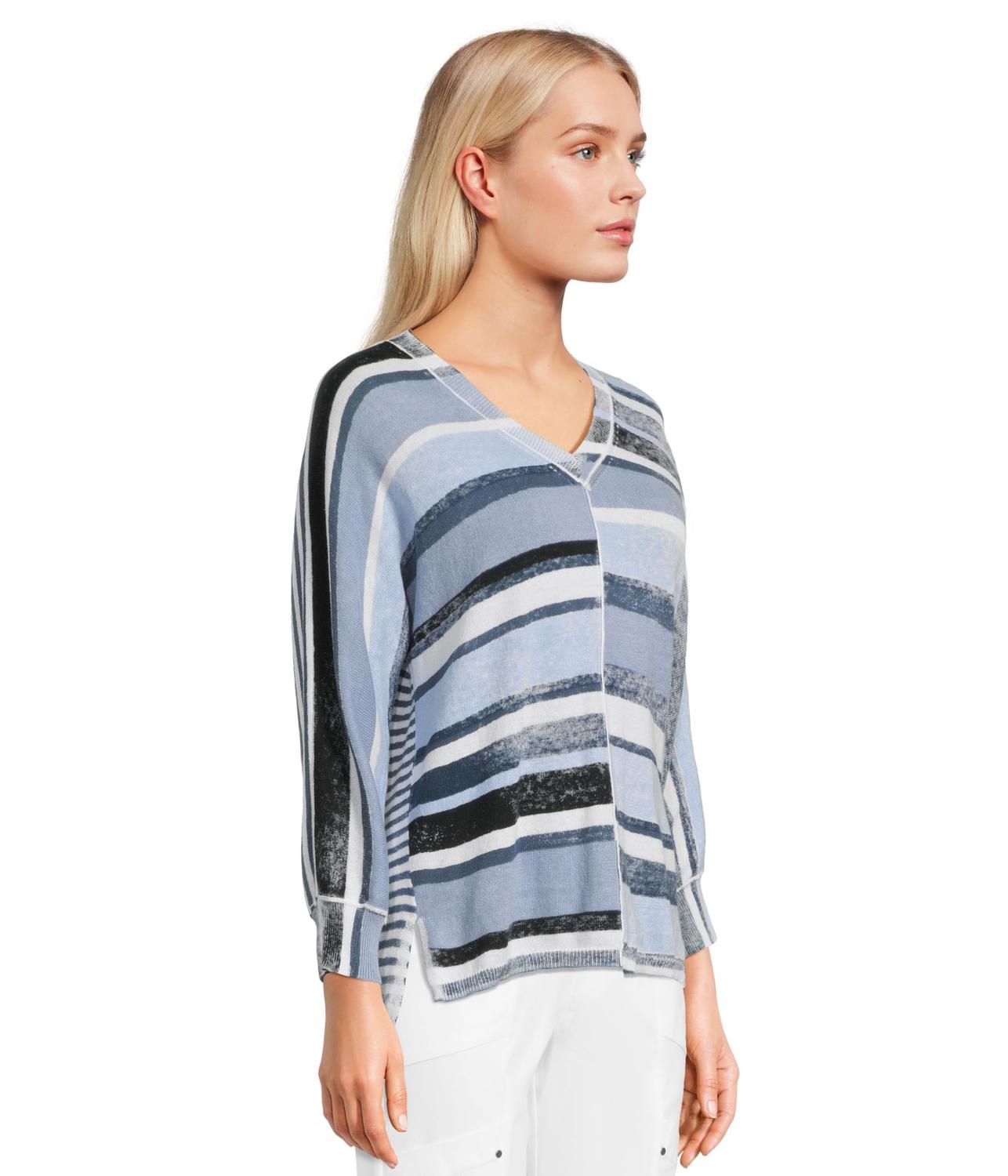 • Вдохните свежесть неподвластного времени стиля, надев свитер Elliott Lauren в полоску с принтом Blue Skies и V-образным вырезом. Это приталенное платье essential, созданное для современных законодателей моды, имеет привлекательный V-образный вырез, который удлиняет ваш силуэт, а длинные рукава создают нужную нотку тепла и изысканности. Яркие принтованные полосы придают этому свитеру динамичный вид, делая его идеальным сочетанием повседневности и шика.