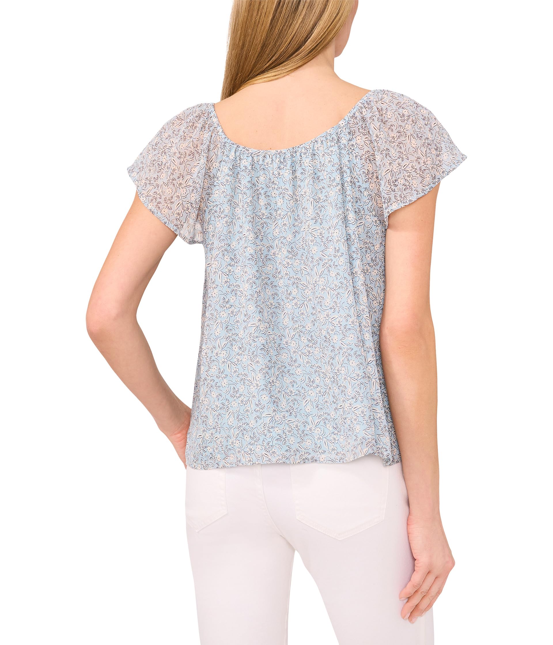 Топ CeCe Printed Round Neckline Flutter Slv Top, Blue Pearl 5 592₽