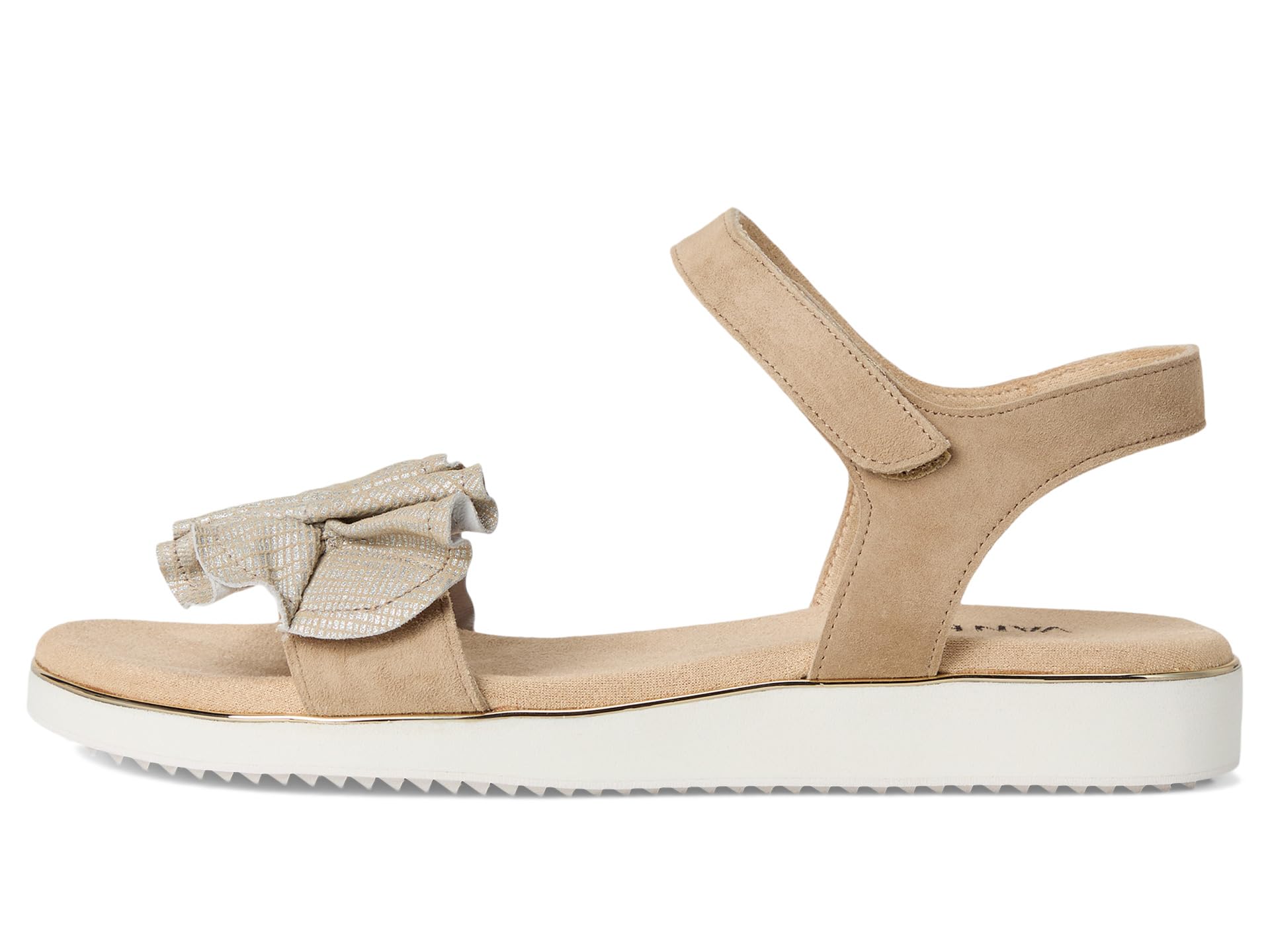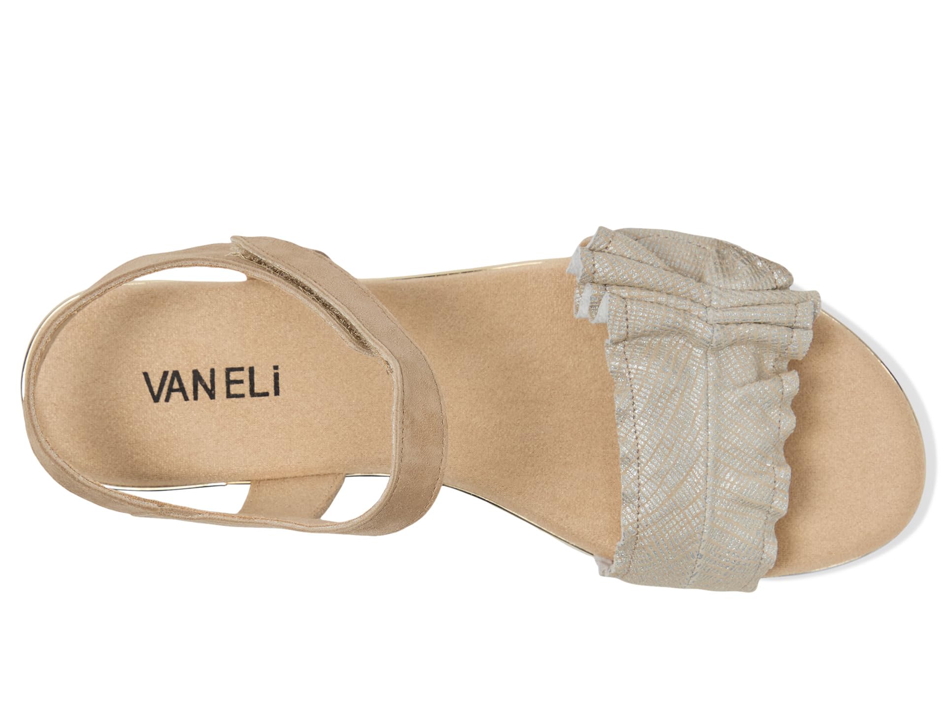 • Босоножки Vaneli Elsbet с ремешком-рюшами и застежкой на липучку обеспечивают надежную и регулируемую посадку. Скрытая эластичная вставка под пряжкой обеспечивает дополнительный комфорт, а мягкая стелька обеспечивает амортизацию на весь день.