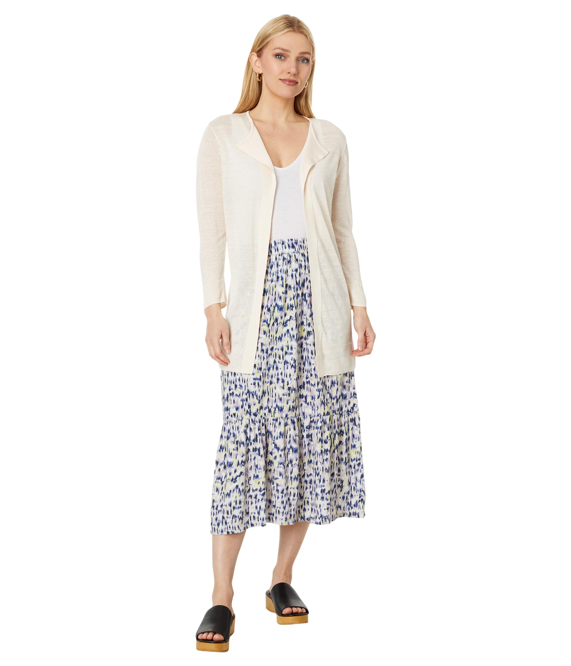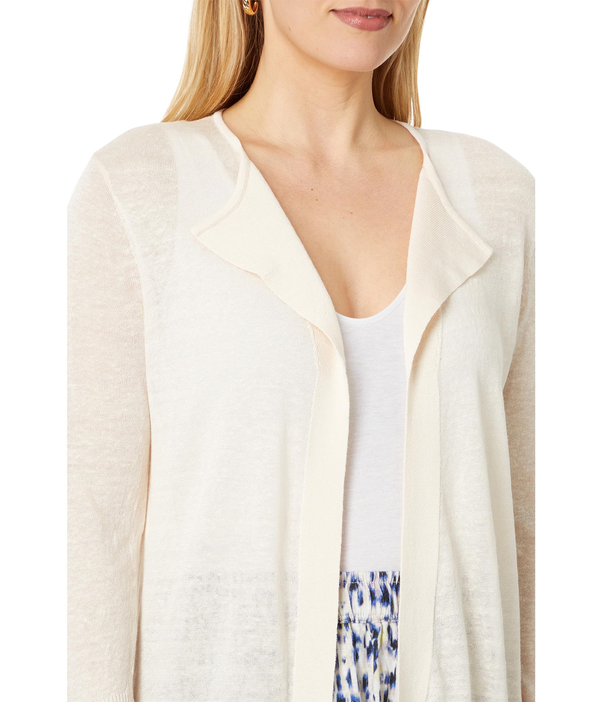 • Придайте своему классическому образу современную утонченность, надев легкий кардиган Flyaway от NIC + ZOE . Модель с открытой передней частью, фигурными лацканами, длинными рукавами и легко надевается.