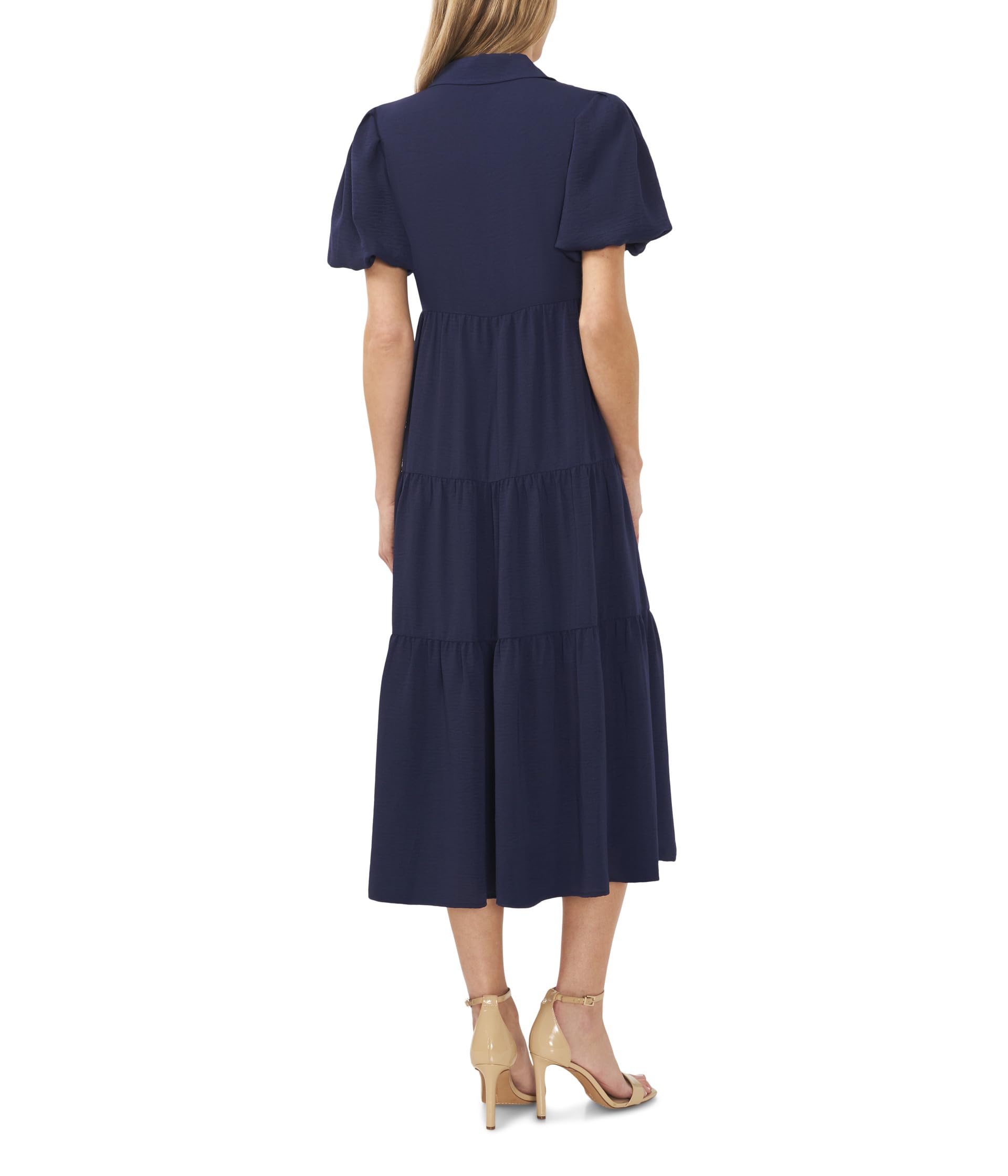 Платье CeCe Short Sleeve Tiered Maxi Shirt Dress, Classic Navy