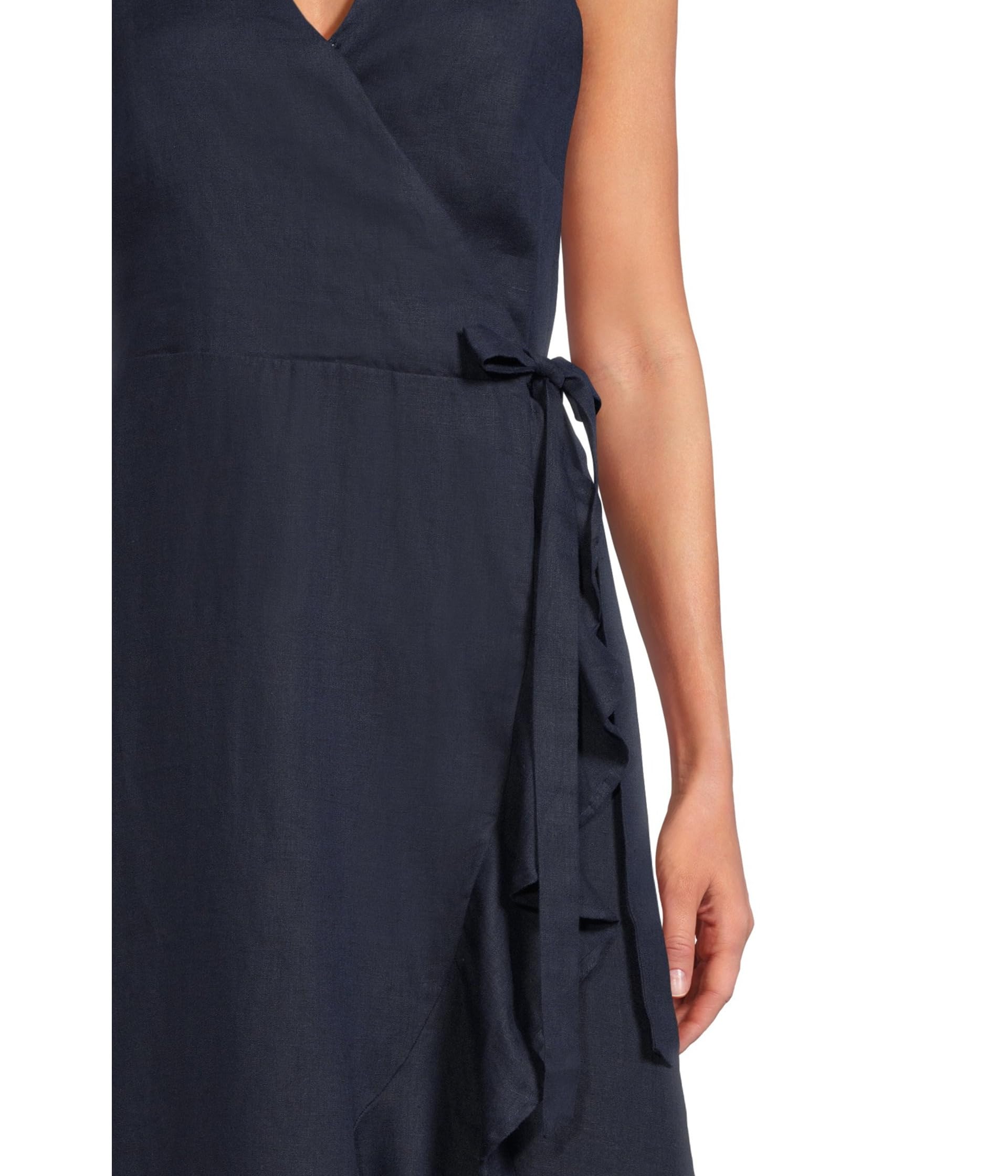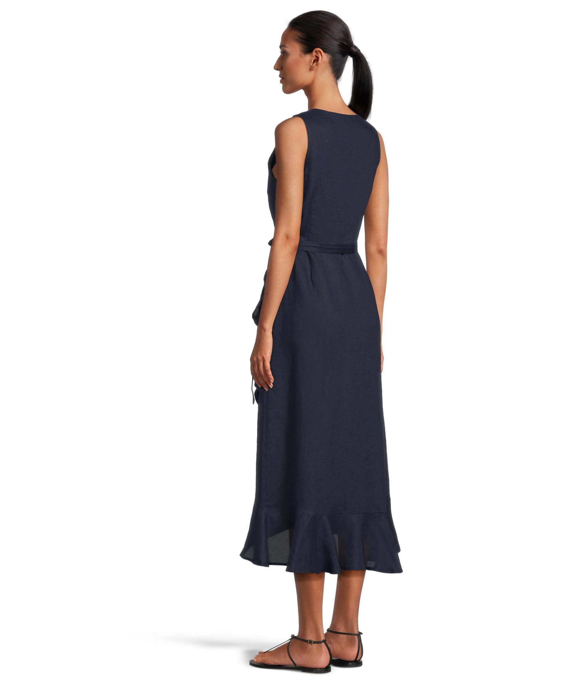 • Миди-платье Tommy Bahama Coastalina без рукавов с запахом - это однотонное льняное платье без рукавов с запахом, изготовленное из мягкого, стирающегося льна, с воланами по низу и регулируемой завязкой на талии. Это платье миди с V-образным вырезом на подкладке для дополнительного комфорта. Стильное и удобное, это платье миди подойдет для разных случаев.