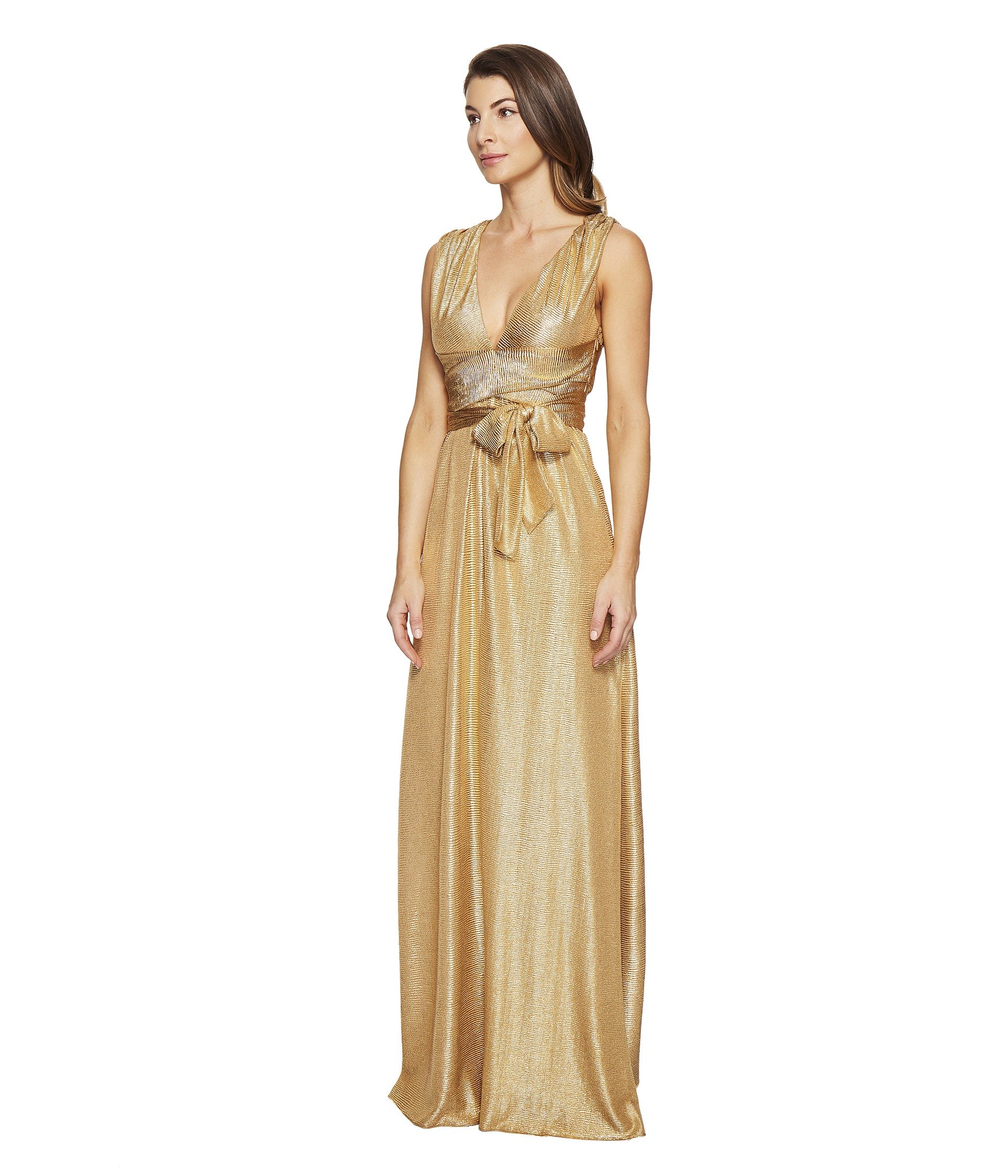 Платье Halston Sleeveless V-Neck Jersey Gown W/ Wrap Tie & Front Slit, Copper