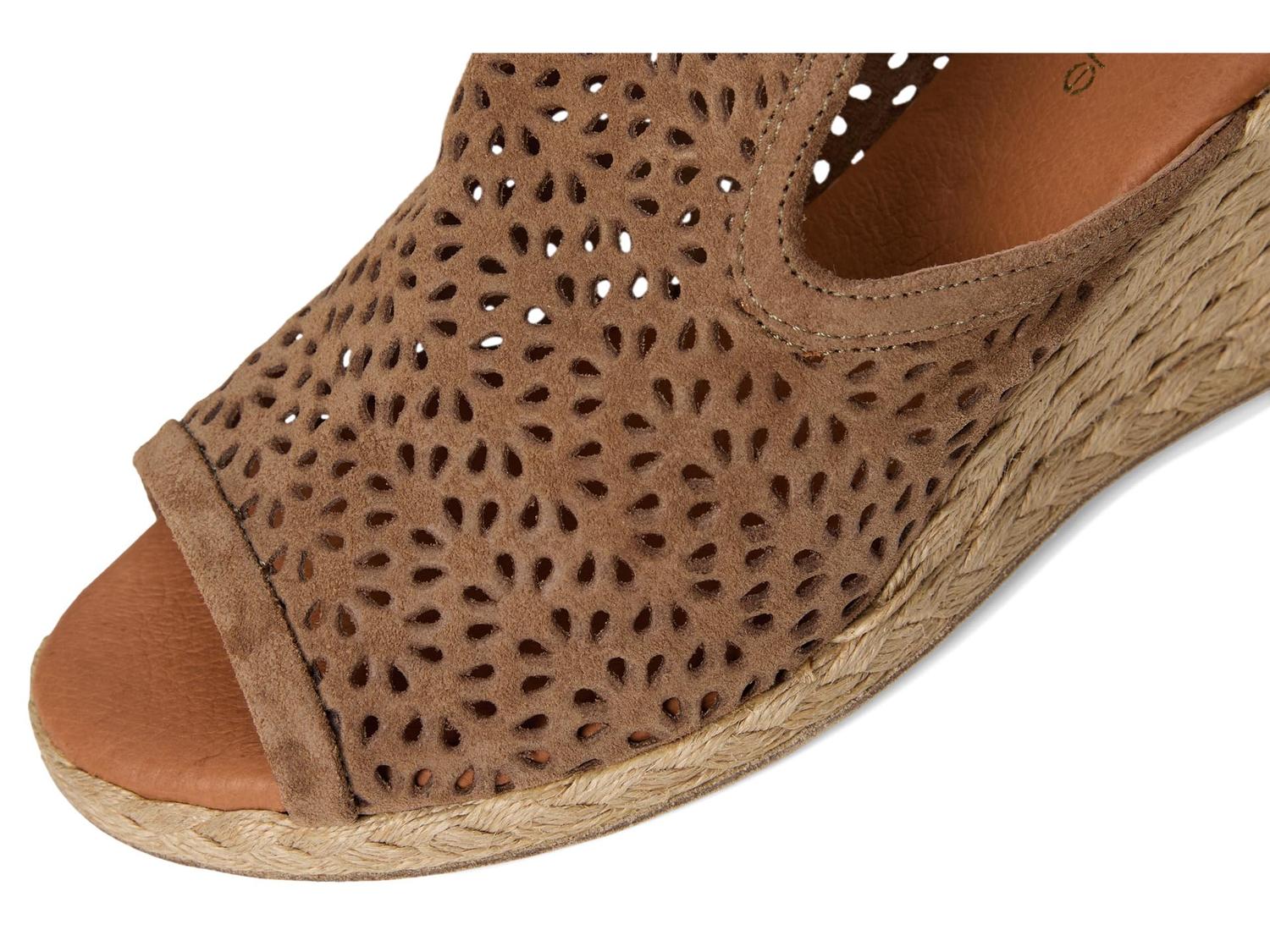 • Босоножки Andre Assous Nissa с перфорированным замшевым верхом и без застежки. Клиновидный каблук, обтянутый рафией, и замшевая подкладка обеспечивают комфорт в течение всего дня.