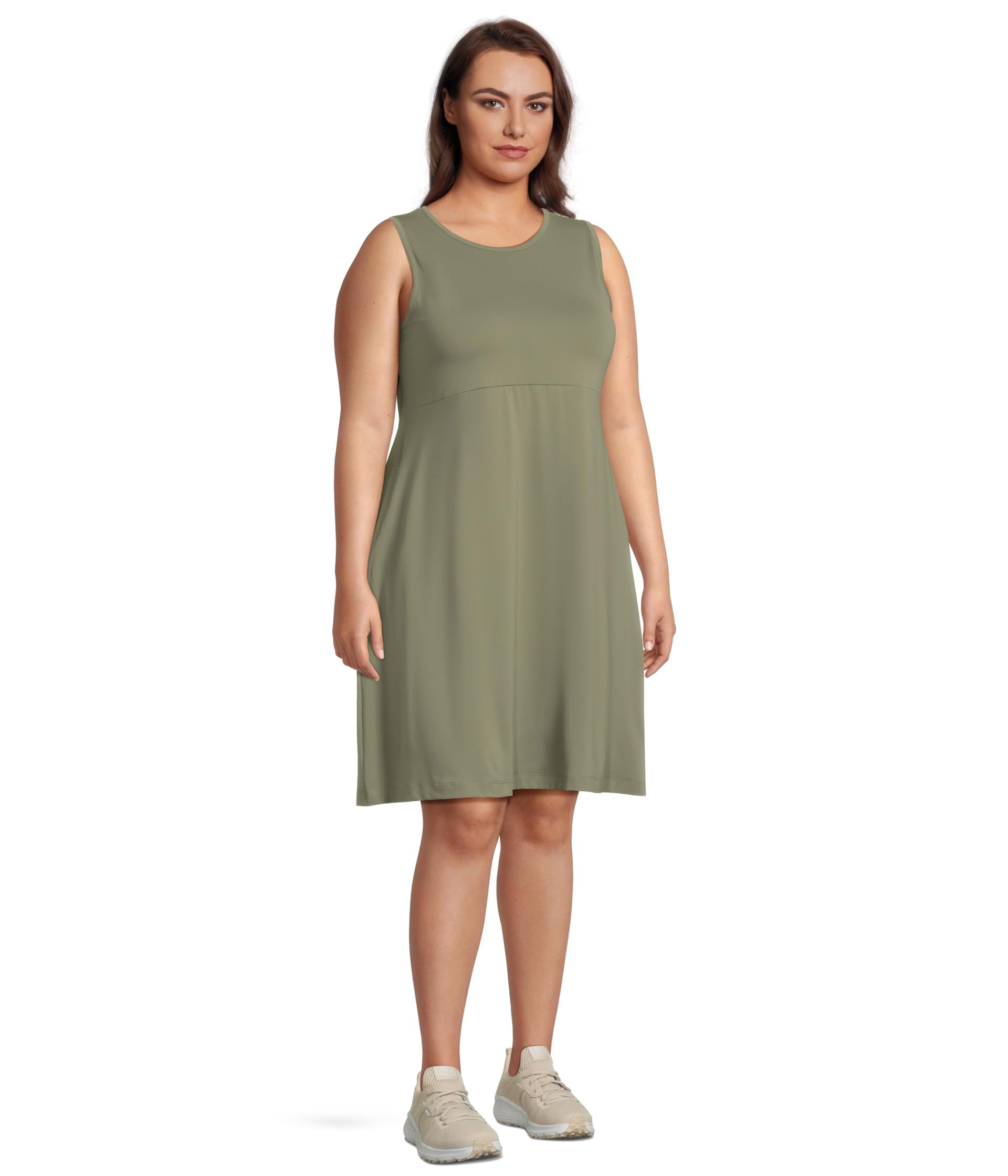 • Вам и вашим подругам понравится ваш непринужденный, но красивый стиль в повседневных нарядах в платье-майке Columbia Plus Size Freezer . Приталенное платье А-силуэта с круглым вырезом, без рукавов, двумя карманами для рук и силуэтом до колен. Это универсальное платье с защитой UPF 50 и передовой технологией охлаждения для легкого летнего комфорта.