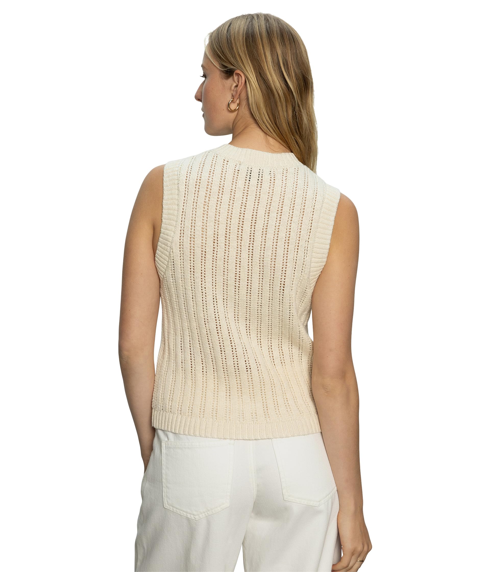 • Подчеркните элегантный и утонченный стиль, надев топ-ракушку Sanctuary Pointelle. Топ без рукавов с круглым вырезом, застежкой на пуговицы спереди по центру и отделкой в рубчик.