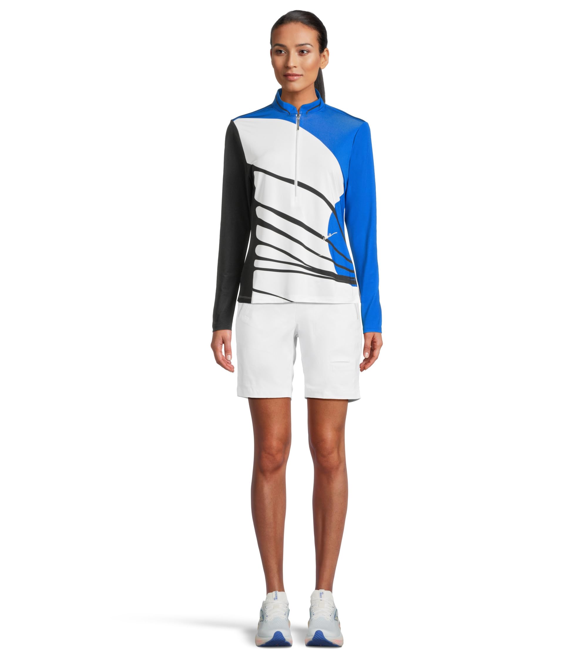 • Топ Jamie Sadock с принтом в обертке и длинным рукавом на молнии 1/4 дюйма, обладающий стильным и уникальным дизайном, в буквальном смысле является произведением искусства, разработанным, усовершенствованным и произведенным с намерением не походить ни на что другое, представленное на рынке. Он изготовлен из легкой эластичной ткани Cooltrex Performance, которая поднимает ваш комфорт на новый уровень. Этот топ с принтом имеет длинные рукава, воротник-стойку с глубокой застежкой-молнией спереди и прямой низ. Его классический силуэт с яркими деталями выделяет вас на голову выше других. Этот топ на молнии позаботится о том, чтобы вы хорошо выглядели и чувствовали себя в моде.