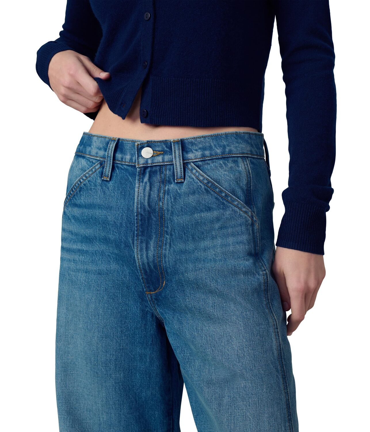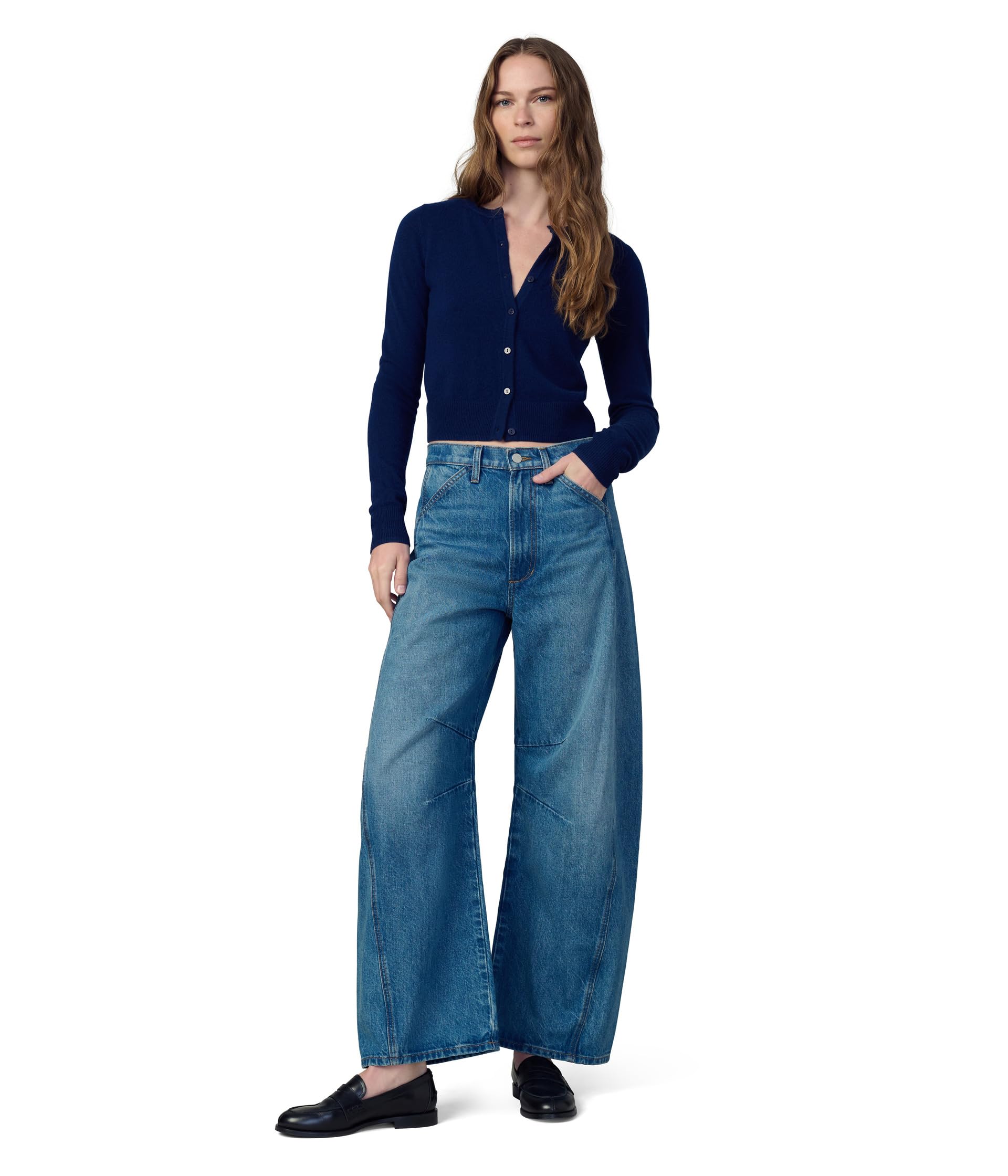 • Сохраняйте непринужденный образ в Joe's Jeans Джинсы Bowie. Джинсы свободного кроя с пуговицами спереди и застежкой на молнию, шлевками для ремня на талии, косыми карманами для рук спереди, накладными карманами сзади и широким силуэтом штанин.
