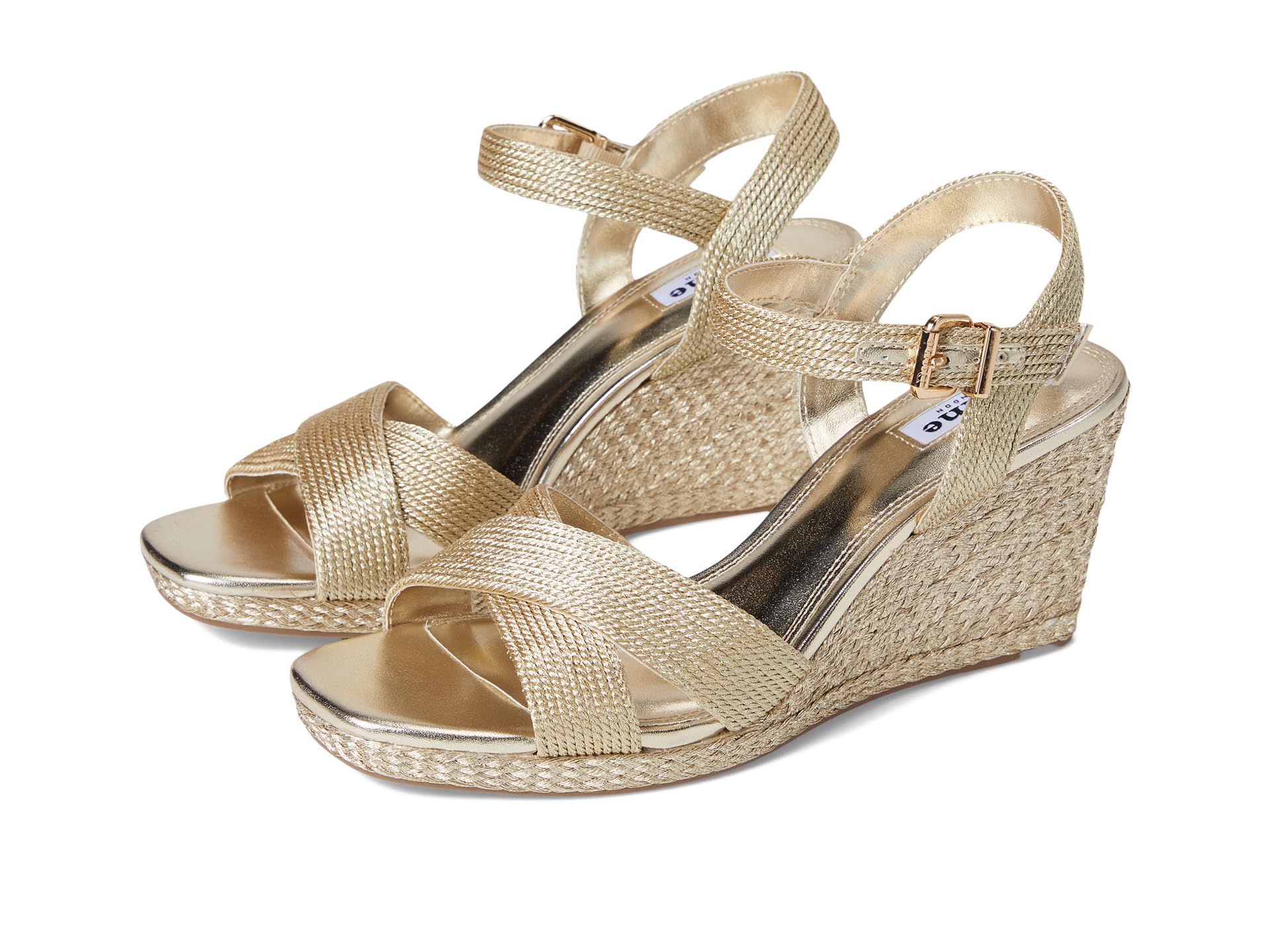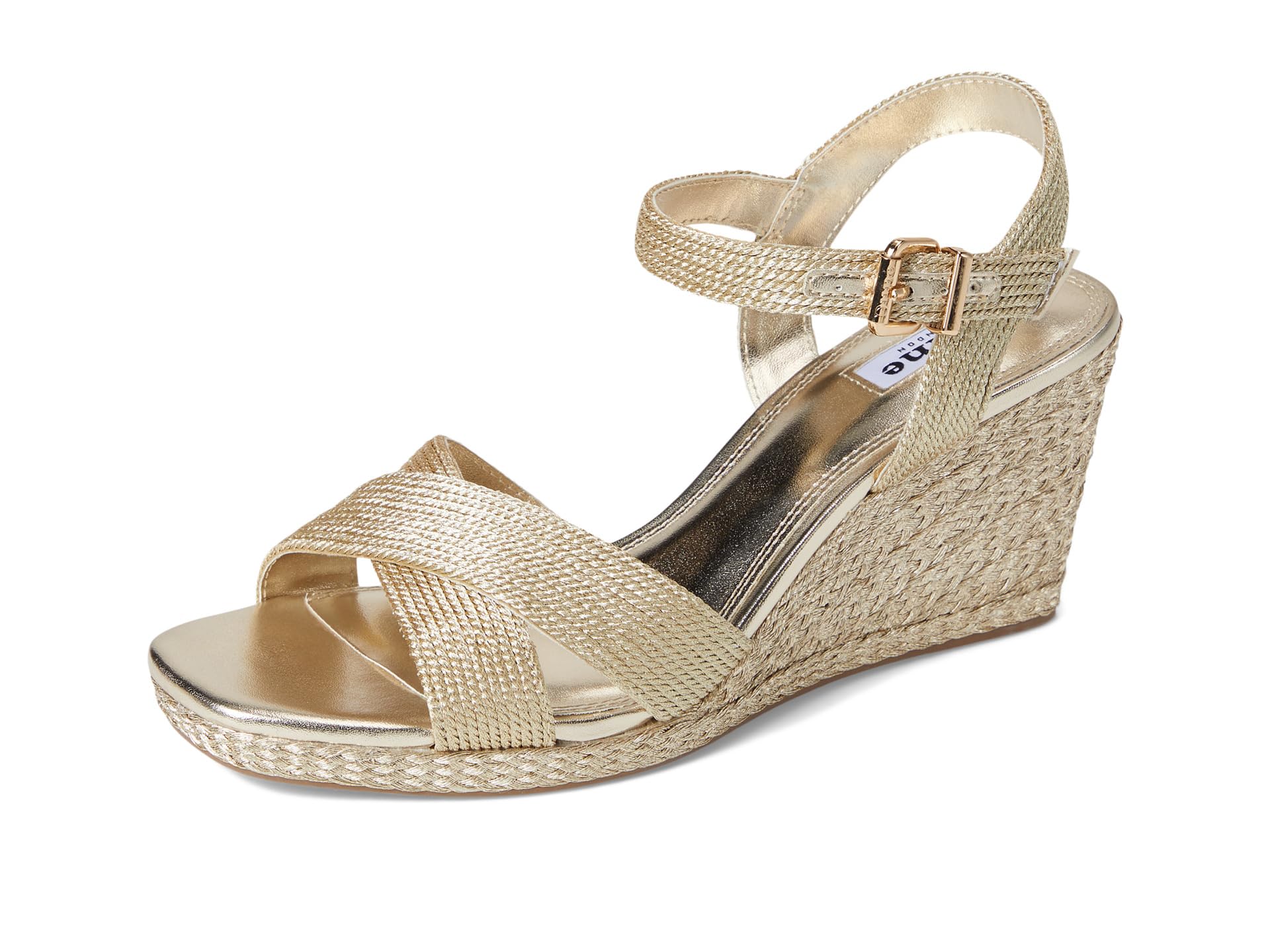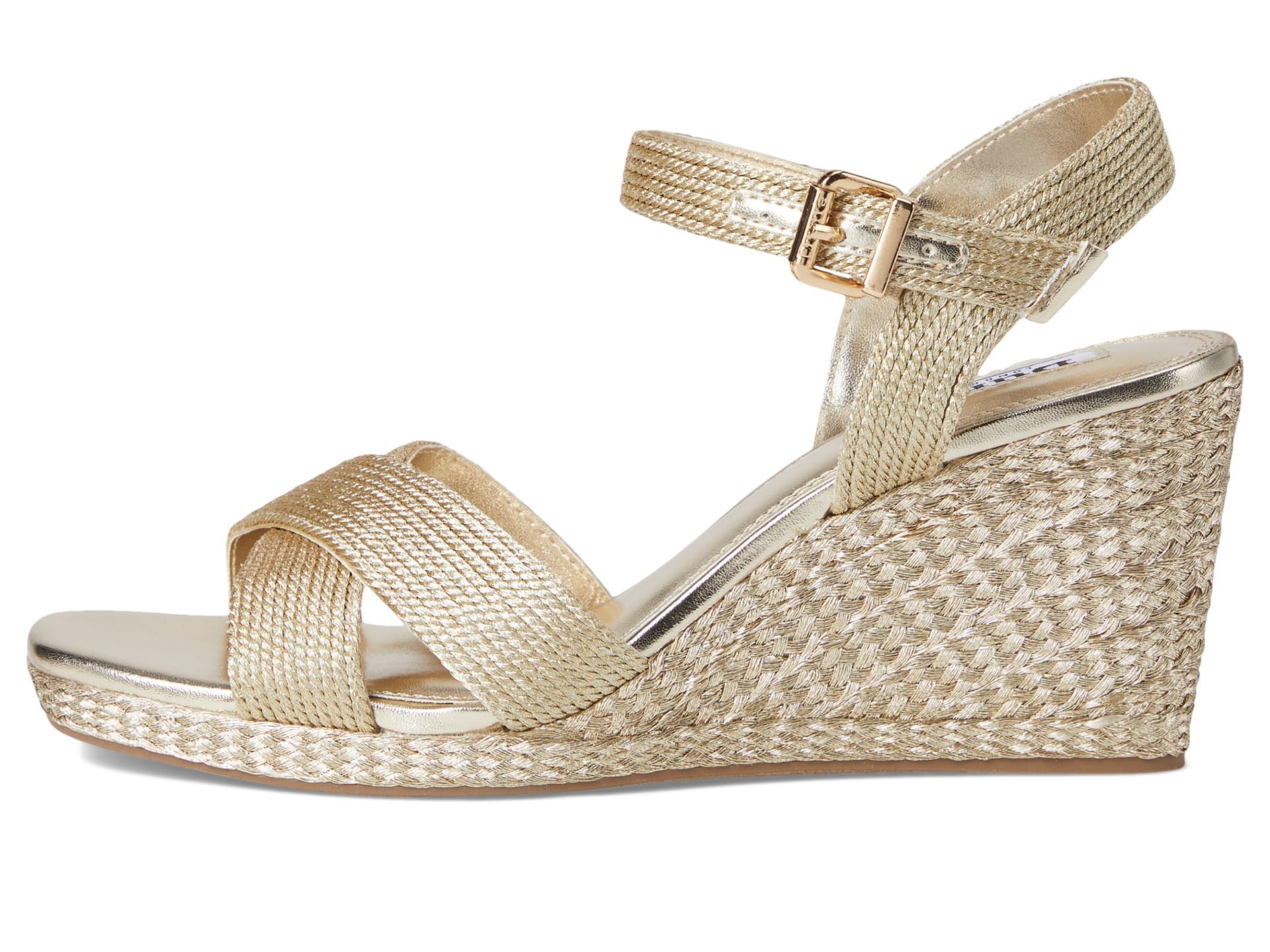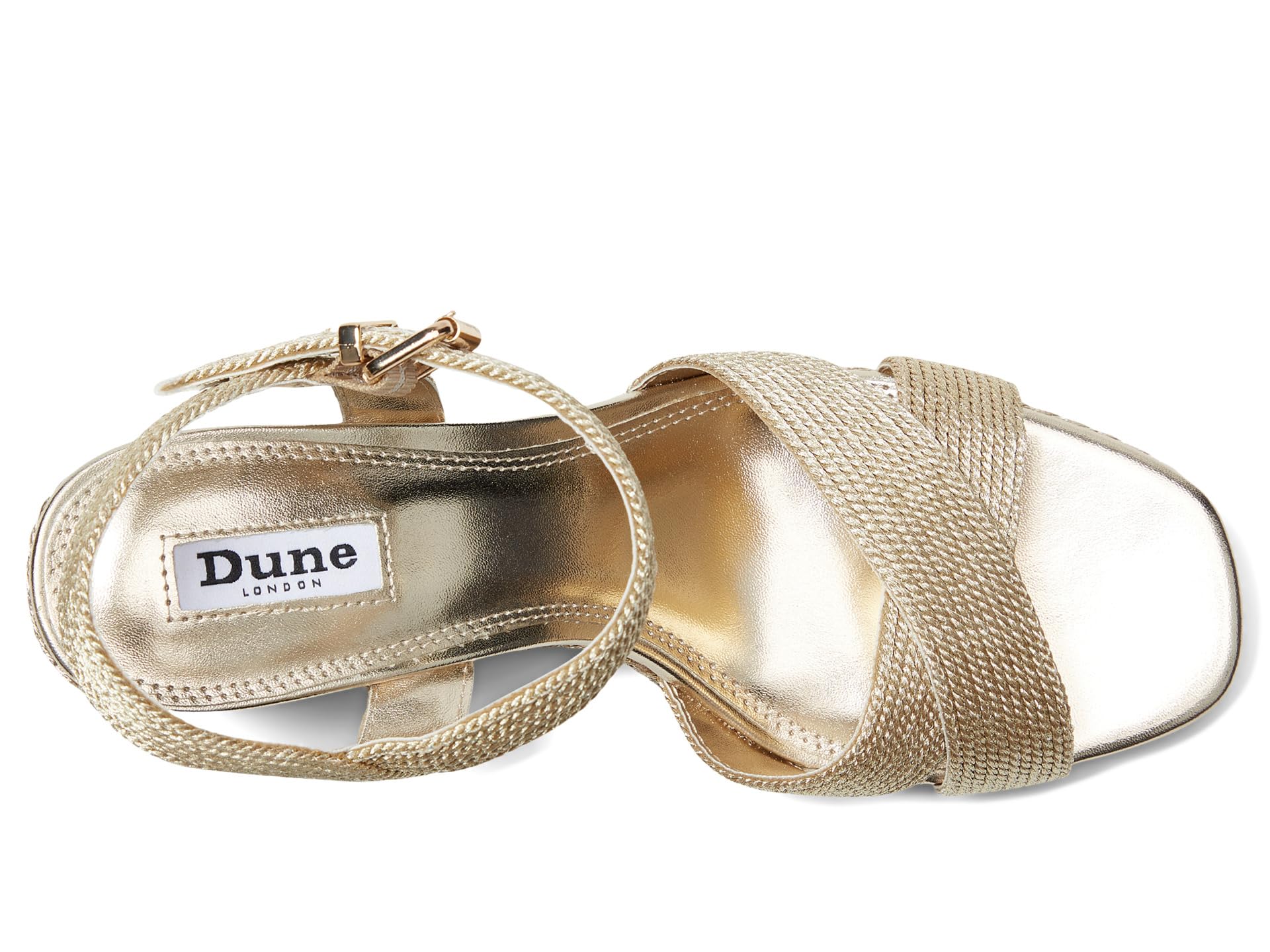 • Танкетка Dune London Kolden выполнена из металлизированной кожи и оснащена регулируемым ремешком на пряжке для идеальной посадки. Эта универсальная модель с плетеным каблуком-танкеткой легко подойдет как для повседневного, так и для вечернего образа.