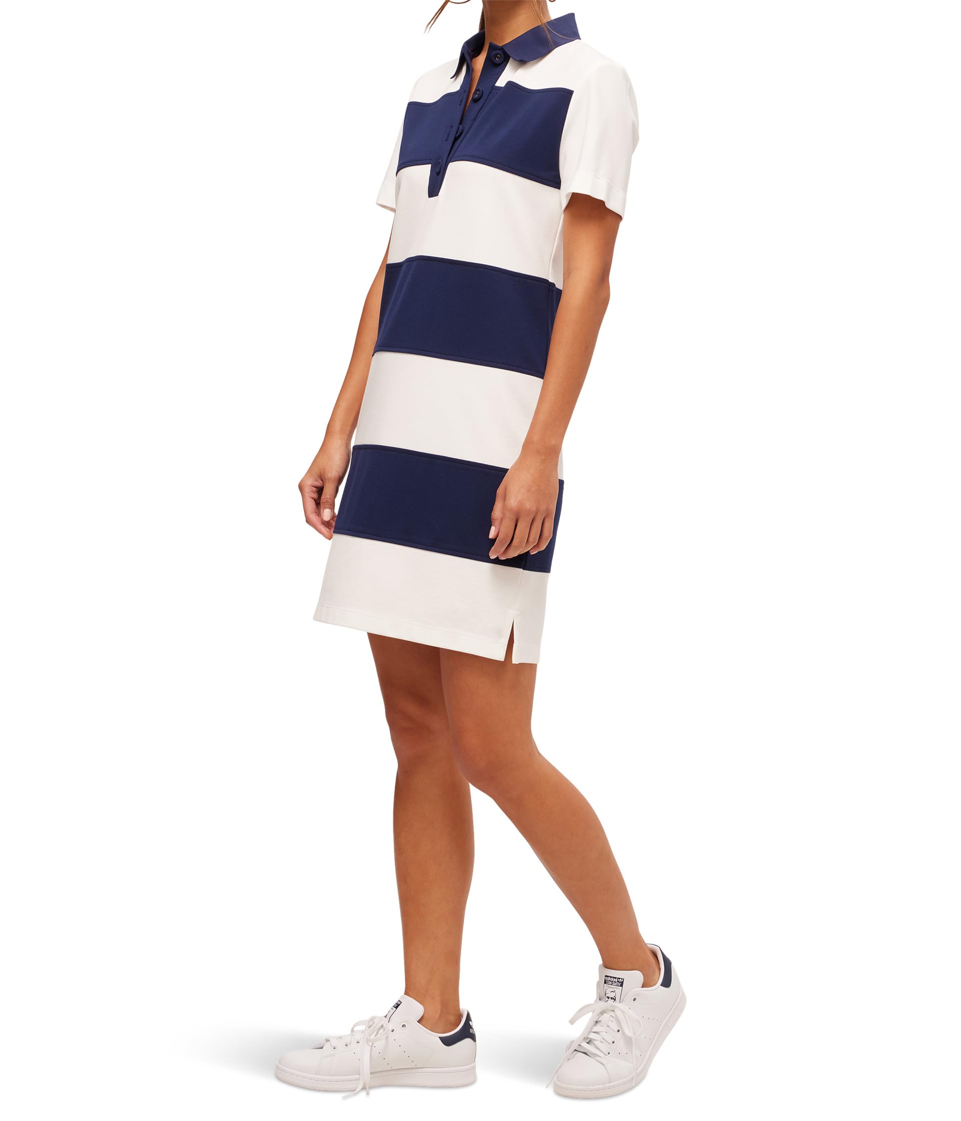 • Элегантное платье Trina Turk Conners от Trina Turk - это то, что вам нужно для создания модного непринужденного образа. Это платье с коротким рукавом с приталенным вырезом горловины и планкой наполовину, идеально подходящей для солнечных дней и повседневных прогулок. Яркий узор в горизонтальную полоску придает изделию современный вид, а приталенный дизайн обеспечивает максимальный комфорт и непринужденность. Благодаря непринужденной посадке и свежему стилю это платье является универсальным элементом гардероба, которое можно надеть как сверху, так и снизу для любого случая.