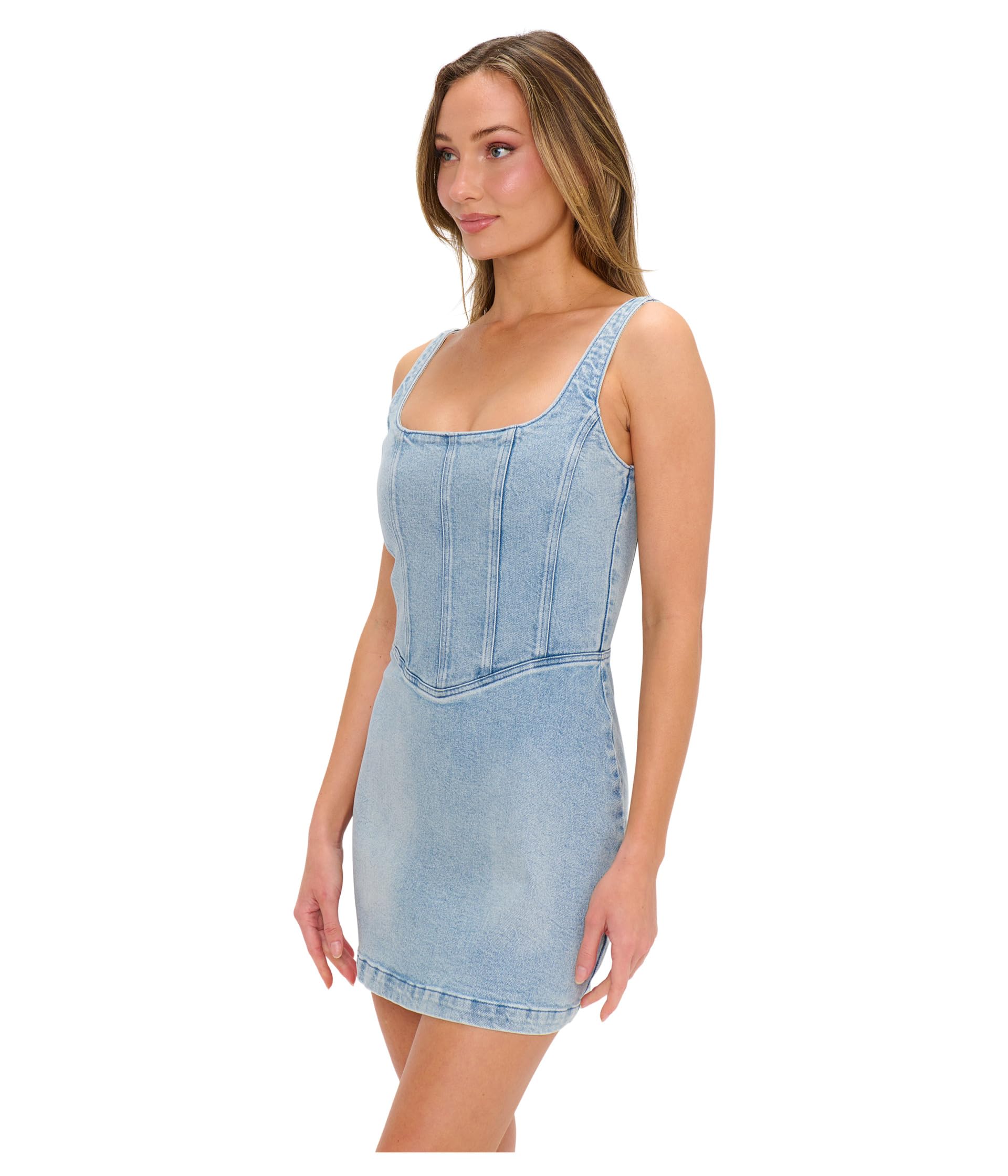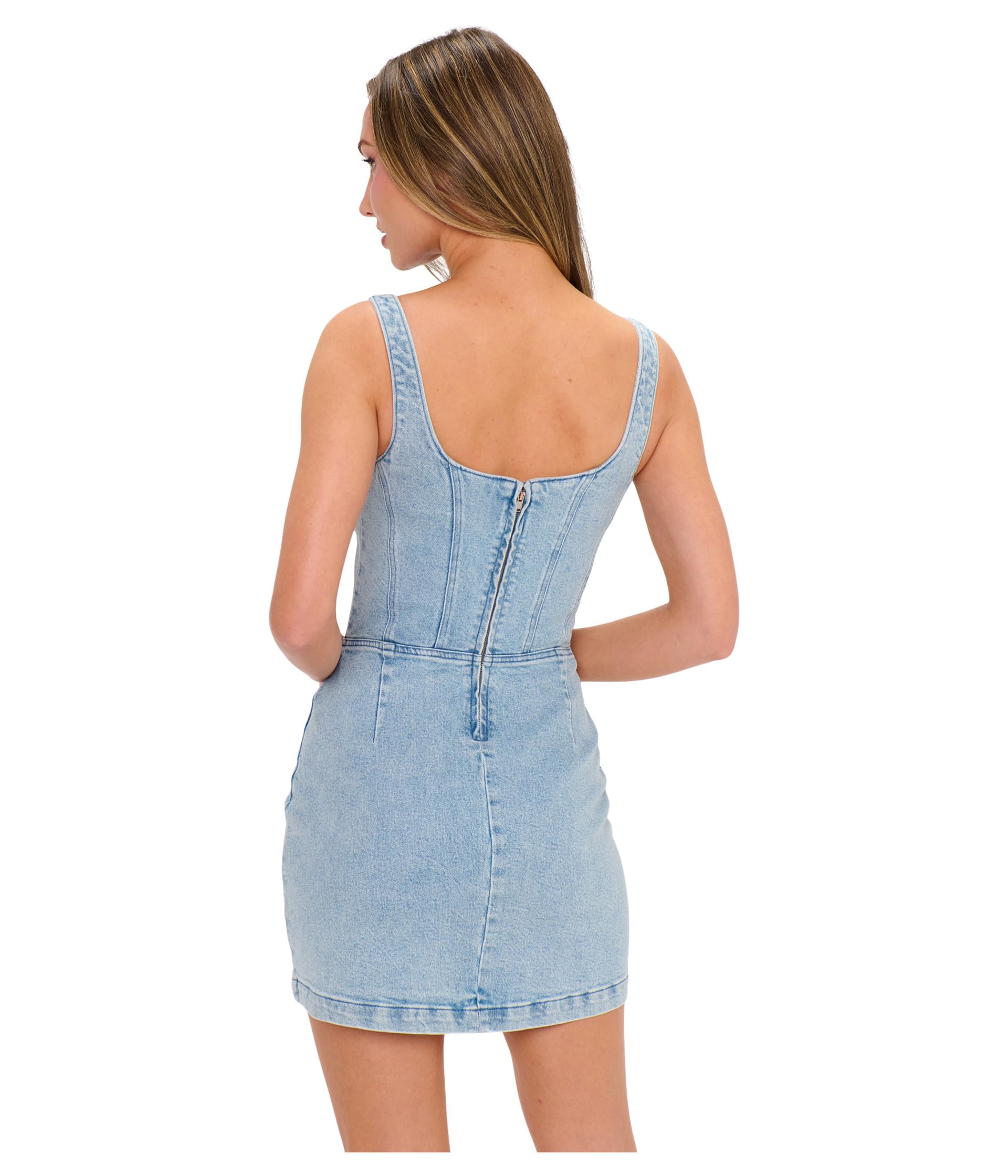 • Корсетное мини-платье Show Me Your Mumu создает иллюзию корсетного топа и юбки, но при этом представляет собой единое целое. Сшитое из удобной эластичной джинсовой ткани цвета индиго, это короткое платье станет вашим джинсовым мини-гардеробом. Это джинсовое платье с квадратным вырезом, без рукавов и прямым подолом. Вы можете сочетать это короткое платье с вашими любимыми ботинками или кроссовками, чтобы одеть ее по-женски.