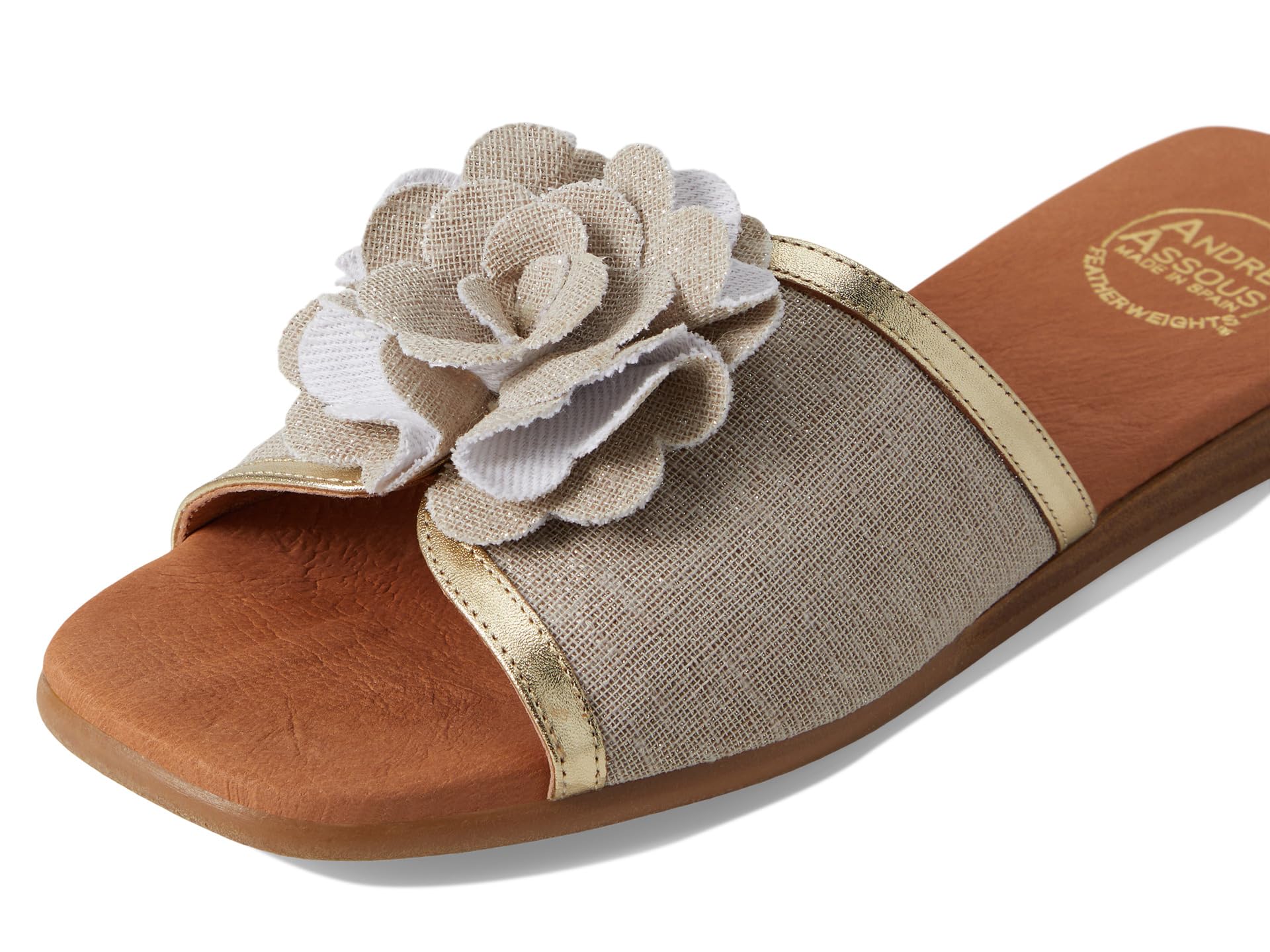 • Заявите о себе в этом сезоне в шлепанцах Andre Assous Kiky! Эти босоножки с потрясающим трехмерным цветочным узором на ремешке обязательно привлекут внимание, куда бы вы ни отправились. Текстильный верх и дышащая кожаная подкладка сохранят ваши ноги в прохладе и комфорте, а кожаная стелька обеспечит дополнительную поддержку.