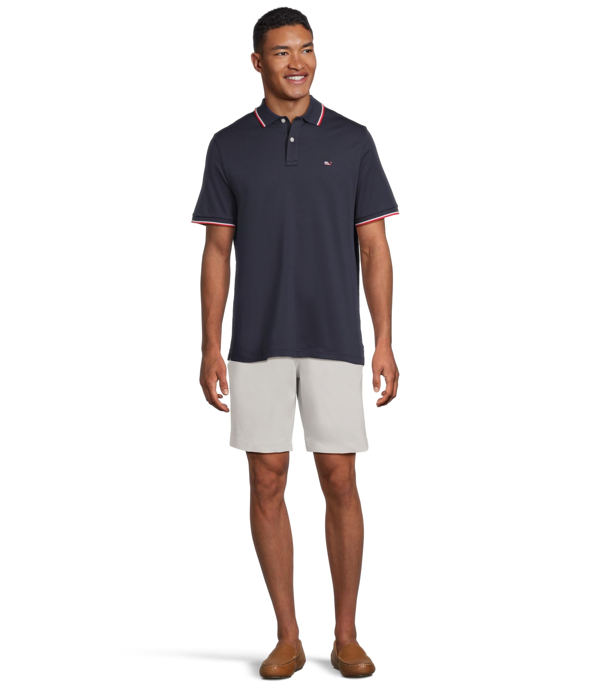 • Отправляйтесь из загородного клуба в офис в универсальном поло vineyard vines. Edgartown Pique Polo. Поло performance классического кроя изготовлено из легкого, прохладного поли-бленда в полоску для ношения с буднего дня до выходных.