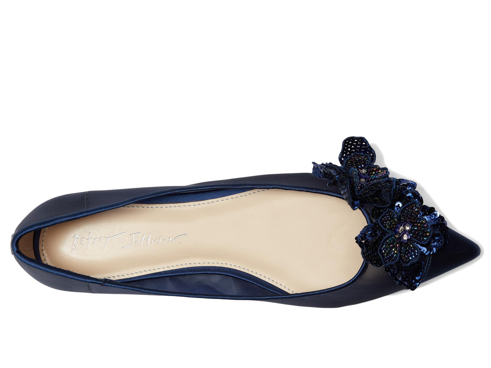 • Встречайте весну с серыми балетками Blue от Betsey Johnson! Острый носок и сетчатые цветочные украшения добавят элегантности любому образу. Попрощайтесь со скучными балетками и поприветствуйте уникальный стиль.