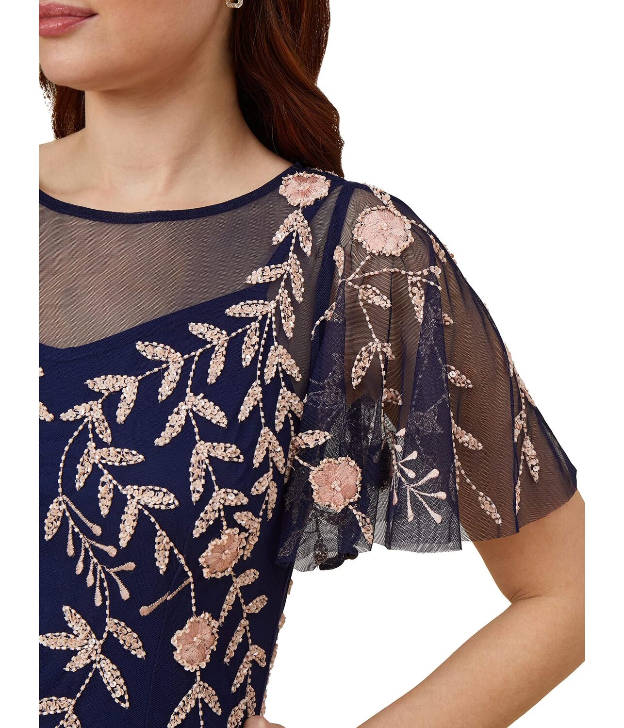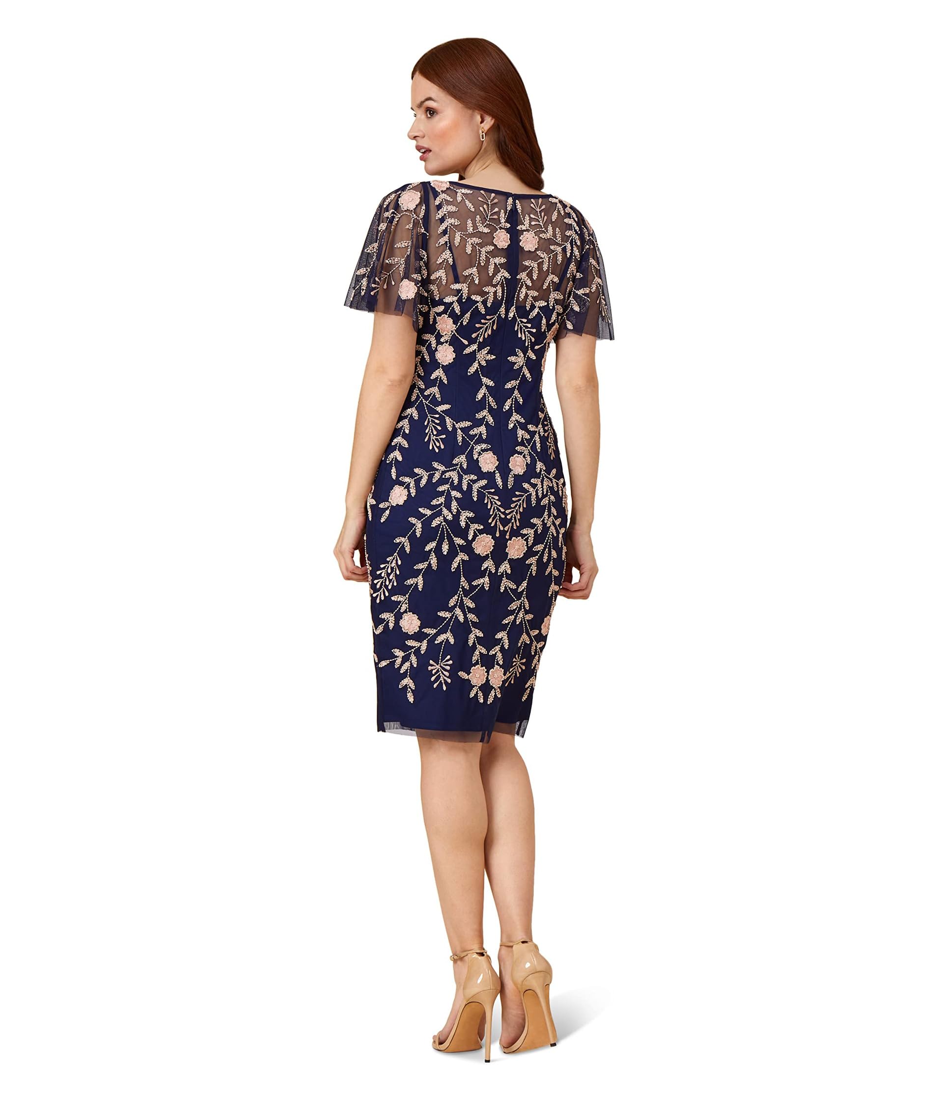 Платье Adrianna Papell Beaded Short Dress, Navy/Blush