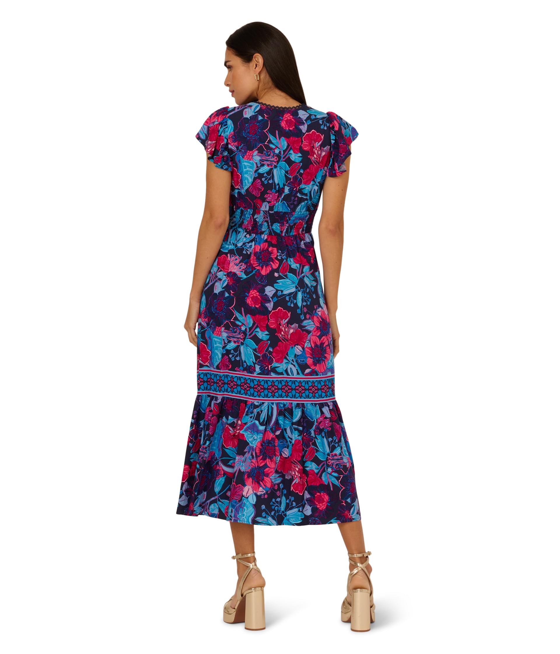 Платье Adrianna Papell Printed Midi Dress, Navy/Pink Multi