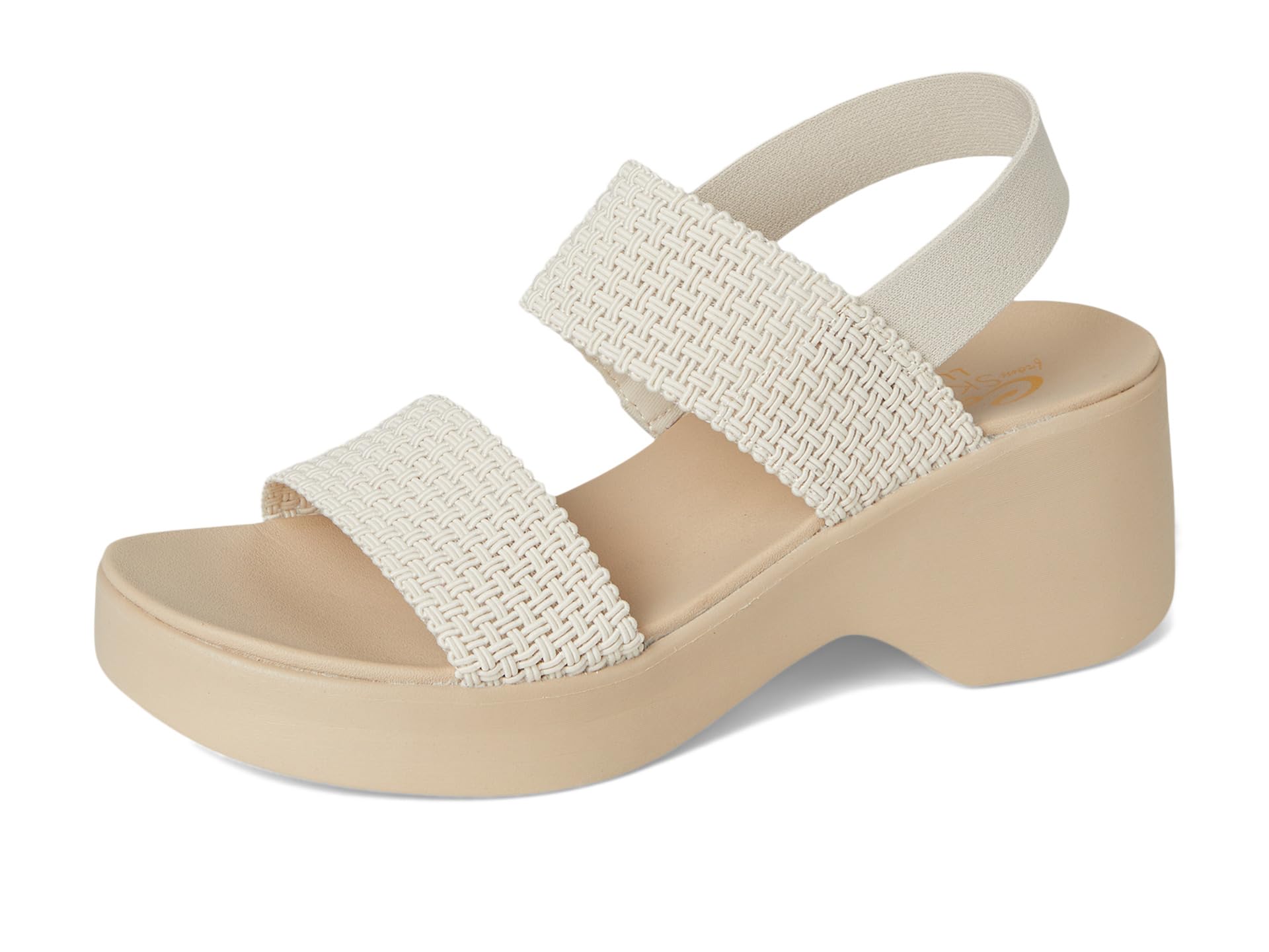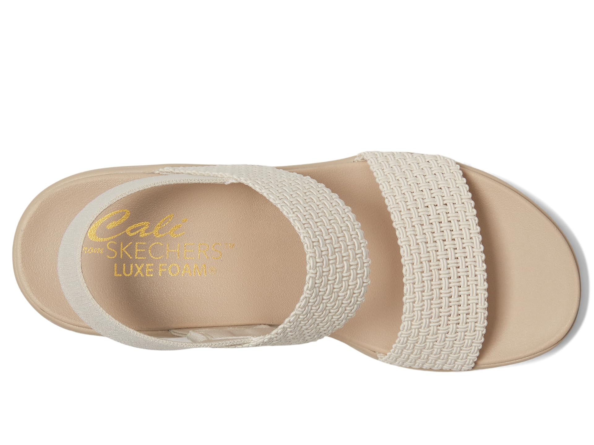 • Стиль, комфорт и внешний вид сочетаются в туфлях на платформе и каблуках SKECHERS Cali Day. Эти босоножки на танкетке с ремешками выполнены из плетеной резины с застегивающимся ремешком, подкладкой из синтетической резины и мягкой стелькой Luxe Foam.