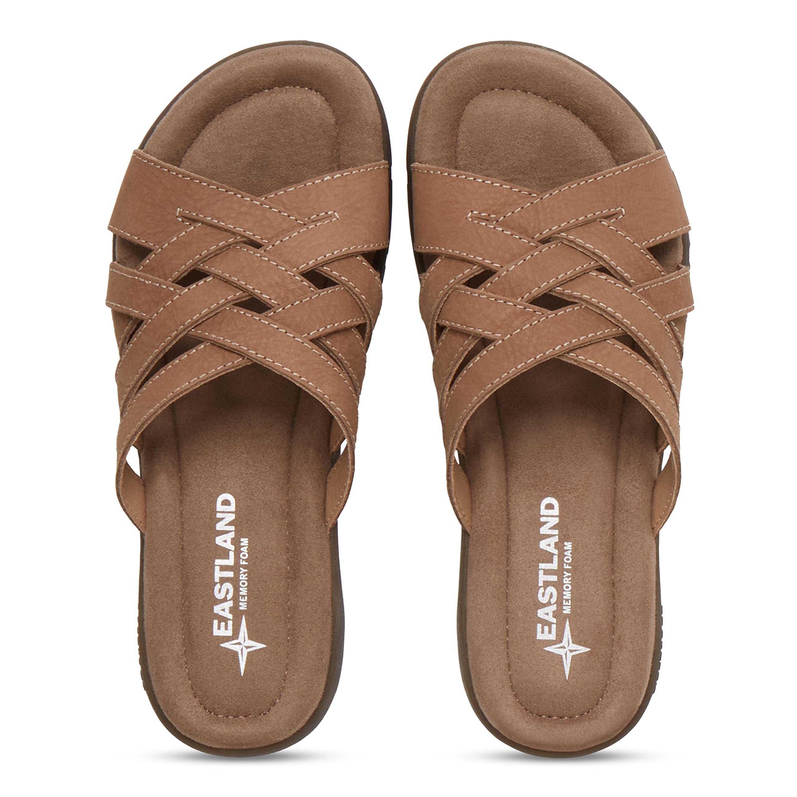 • Босоножки Eastland 1955 Edition Hazel с перекрещенными плетеными ремешками и декоративной строчкой выглядят стильно и уникально. Эти туфли без застежек имеют кожаный верх, круглый носок, тканевую подкладку и комфортную стельку Eastland Exclusive Active Memory Foam, которая поддерживает и повторяет изгибы вашей стопы.
