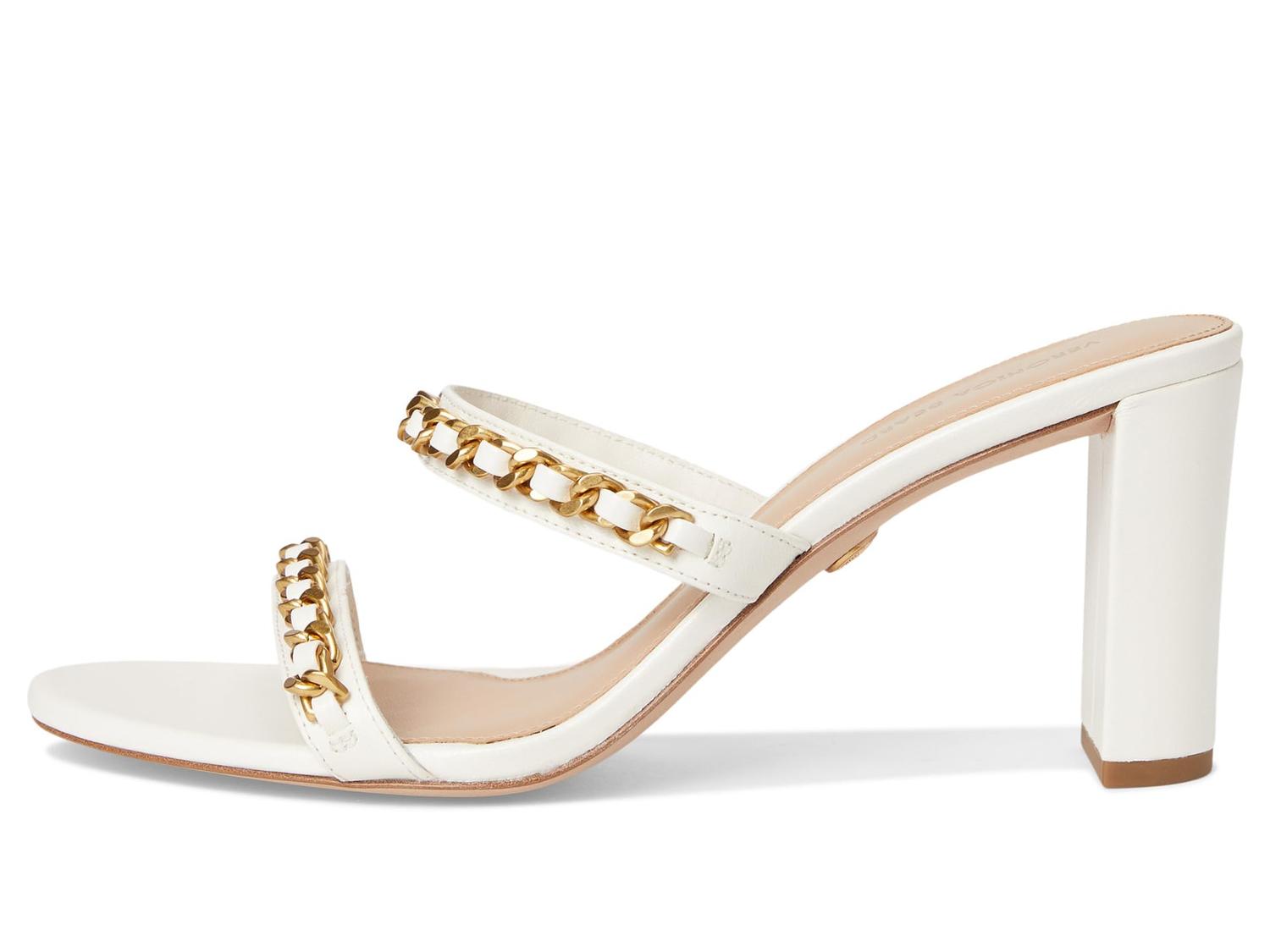 • Искусно изготовленные из кожи, босоножки Veronica Beard Gretchen представляют собой шлепанцы с двумя ремешками, украшенные золотыми звеньями цепи. Мягкая стелька и прочный блочный каблук завершают образ. Верх, стелька и подкладка этих босоножек на каблуке выполнены из кожи. Добавьте элегантности в свой образ с этими босоножками без застежек.