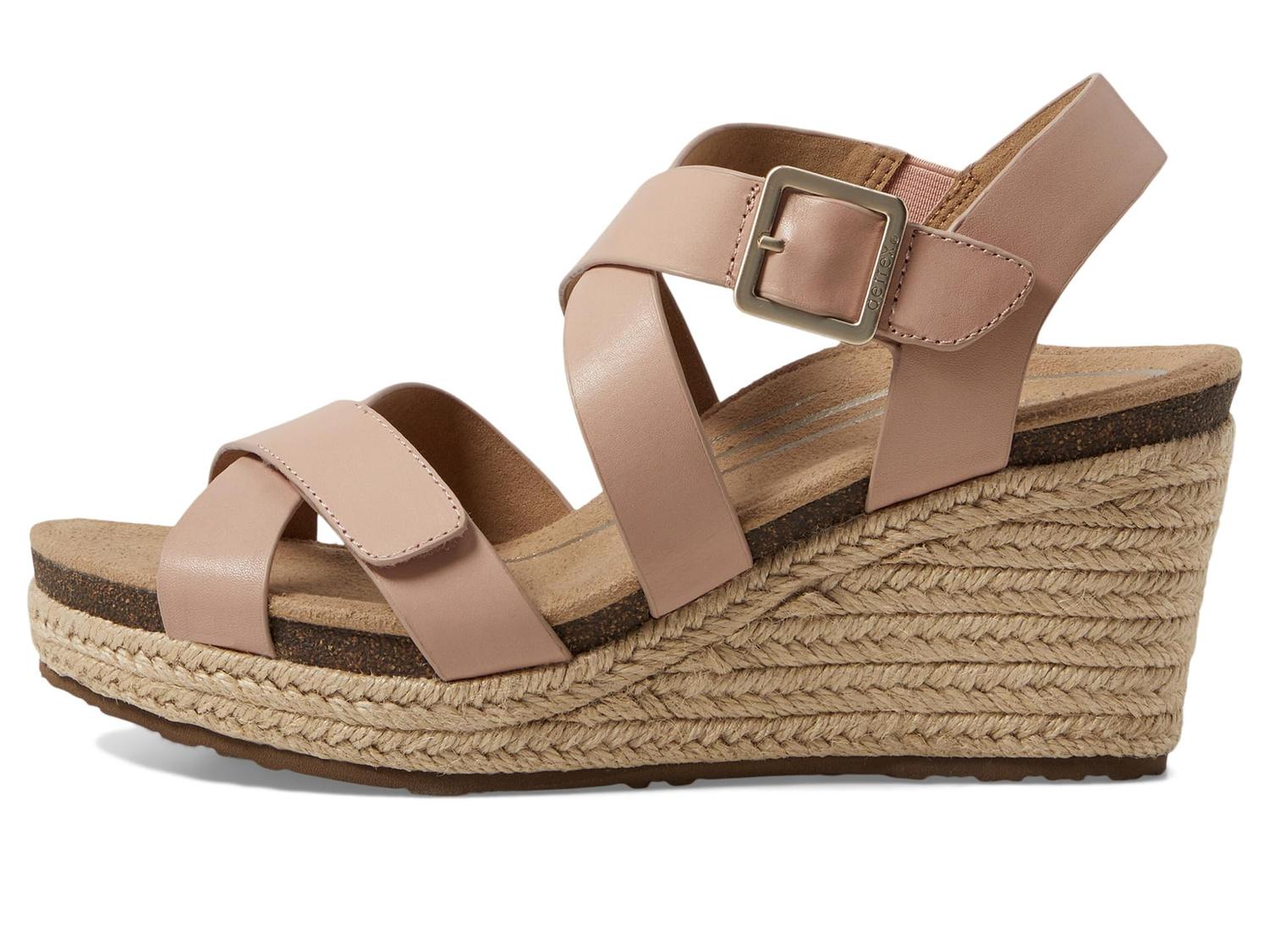 • Босоножки на танкетке Aetrex Anna оснащены ремешком на щиколотке с застежкой на липучке, открытым круглым носком и фирменной символикой на стельке. Верх из кожи и замшевая стелька.
