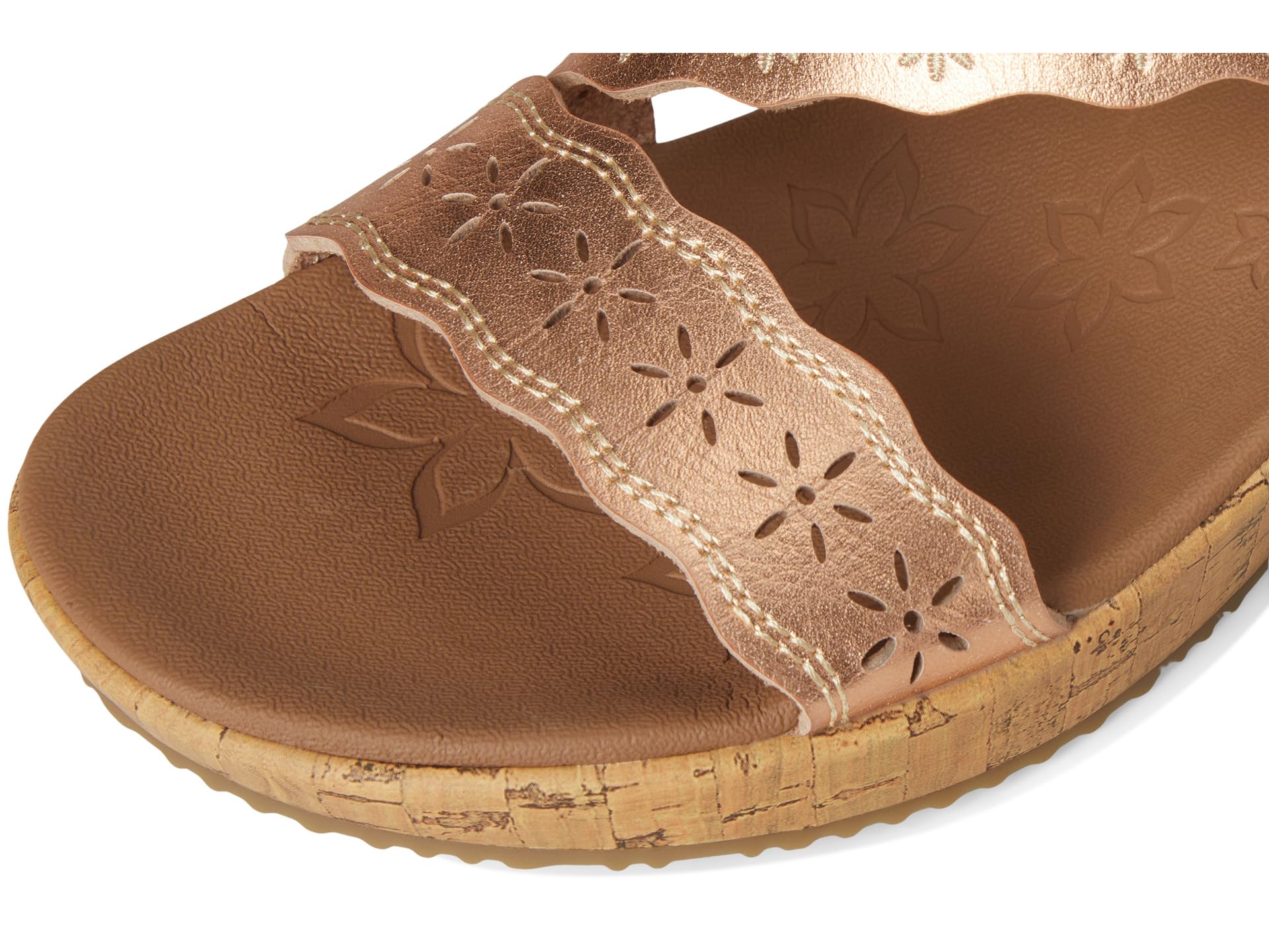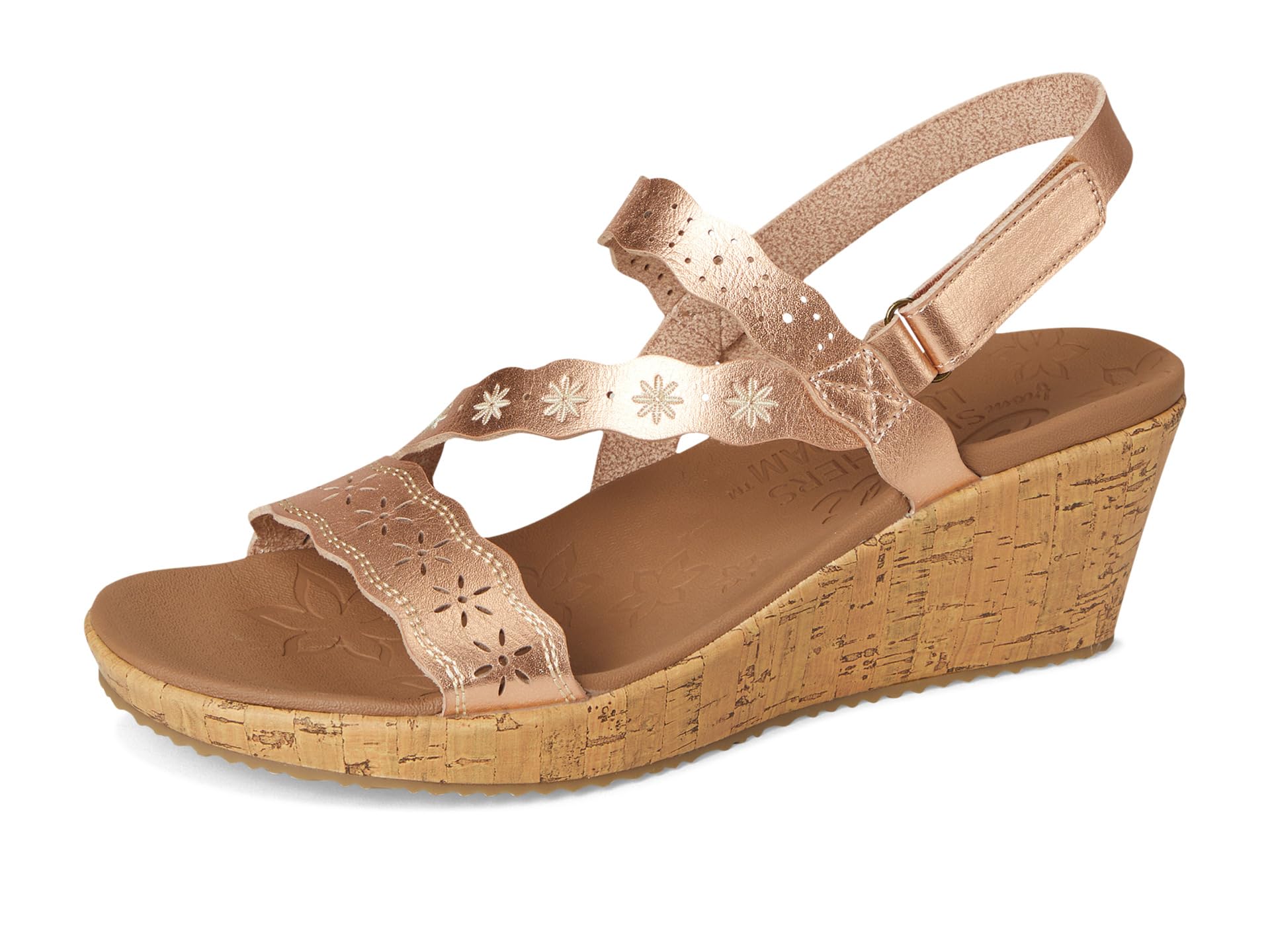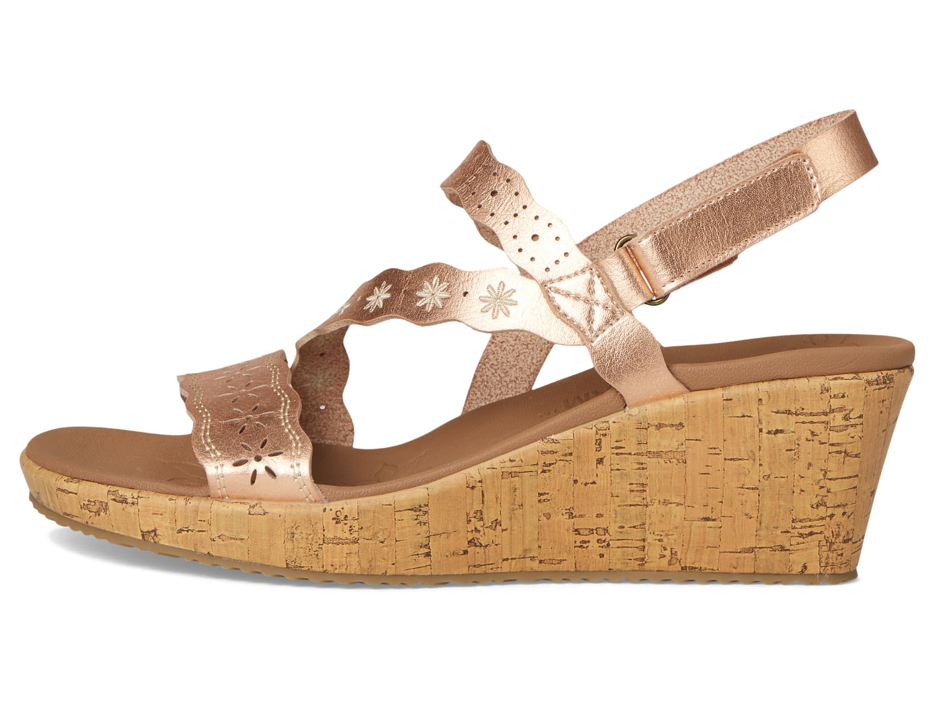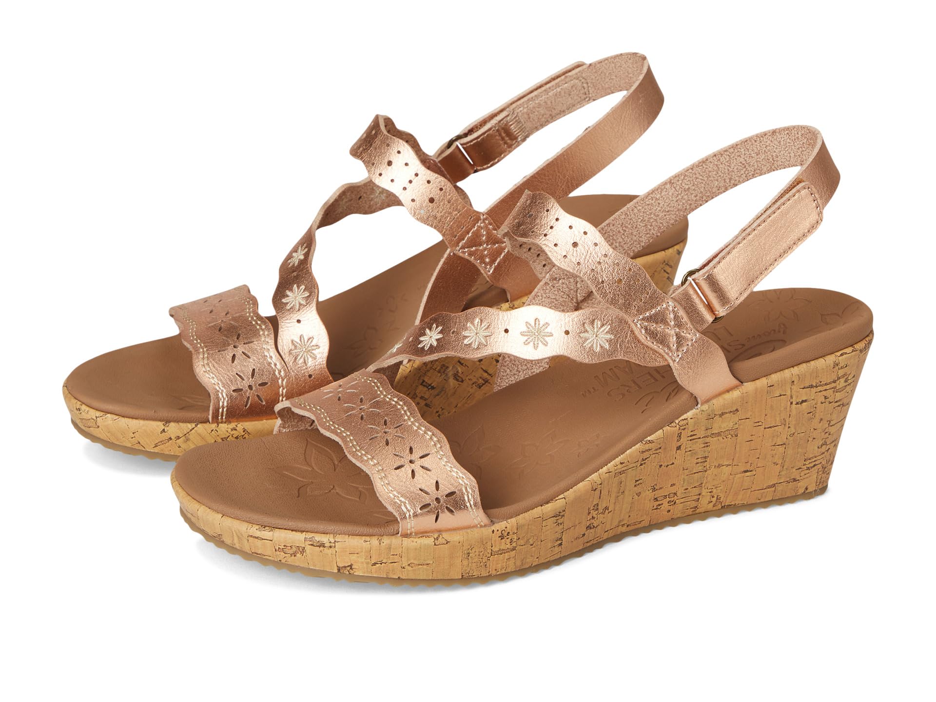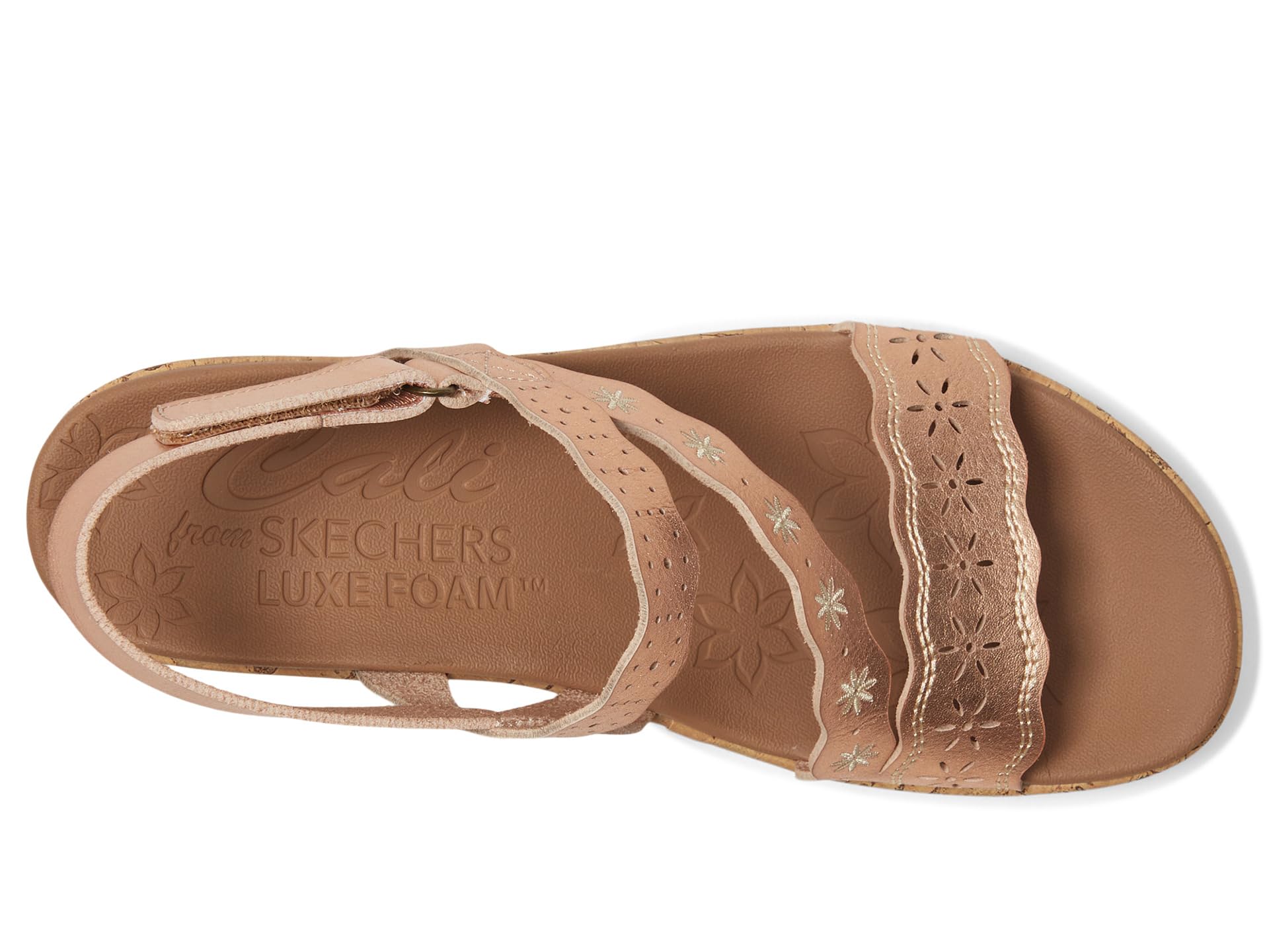• Босоножки SKECHERS Beverlee - Cherished Aura созданы для движения. Эти босоножки из веганского материала с ремешками на танкетке имеют вышитый и вырезанный лазером синтетический верх с регулируемым задником и амортизирующей стелькой Luxe Foam. Модель имеет открытый круглый носок, танкетку и модель без застежек.
