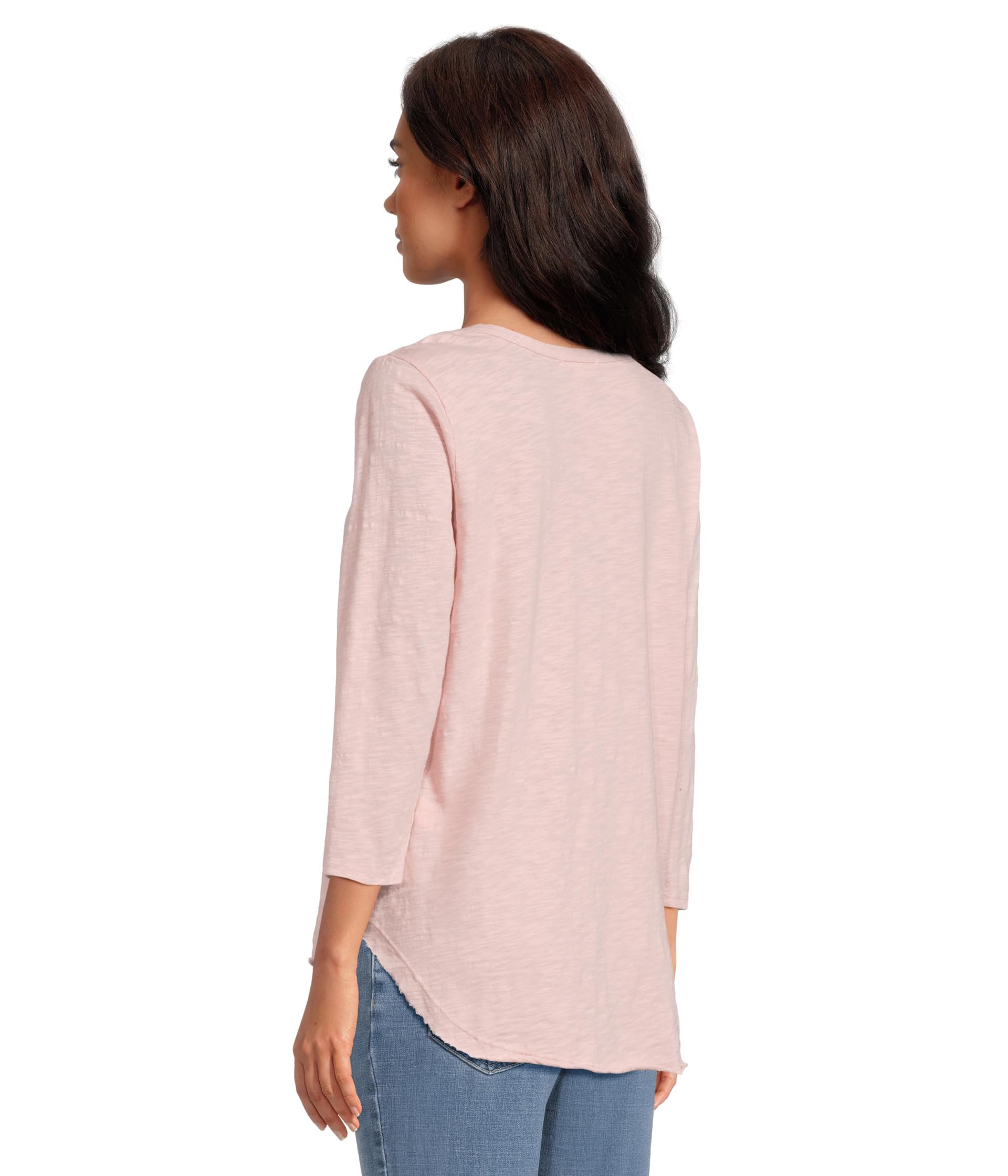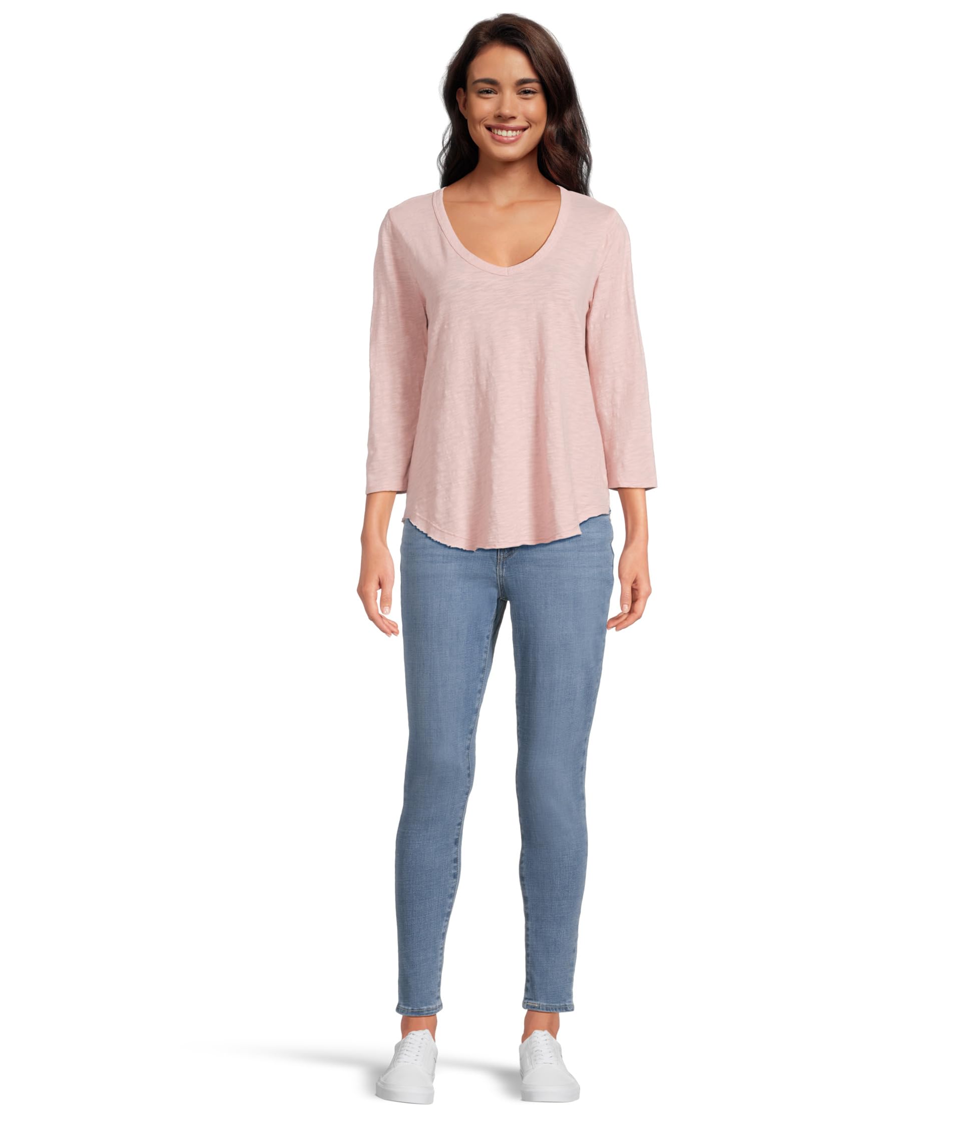 Футболка Mod-o-doc 3/4 Sleeve V-Neck Tee With Curved Hem, Rosebud