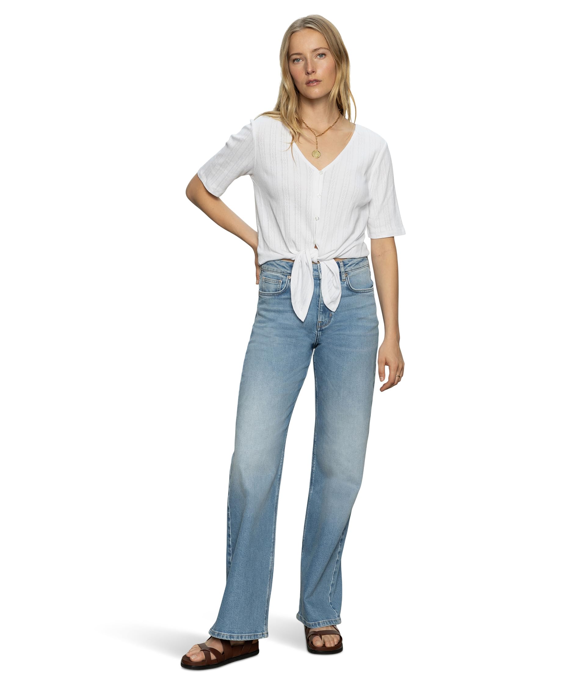 • Выглядите красиво и непринужденно в футболке Sanctuary Pointelle Tie, которая прекрасно сочетается с универсальными брюками. Приталенный топ с V-образным вырезом, короткими рукавами, застежкой на центральную пуговицу и завязкой на подоле.