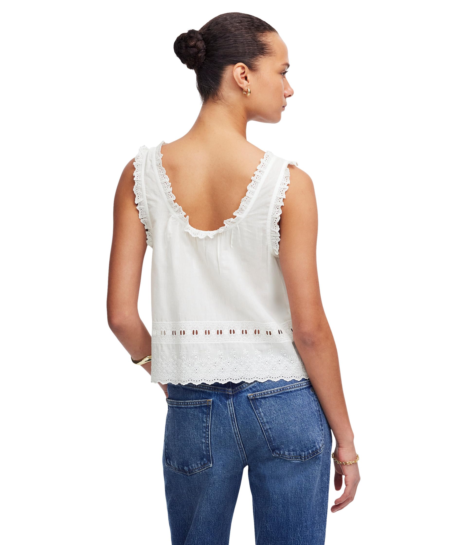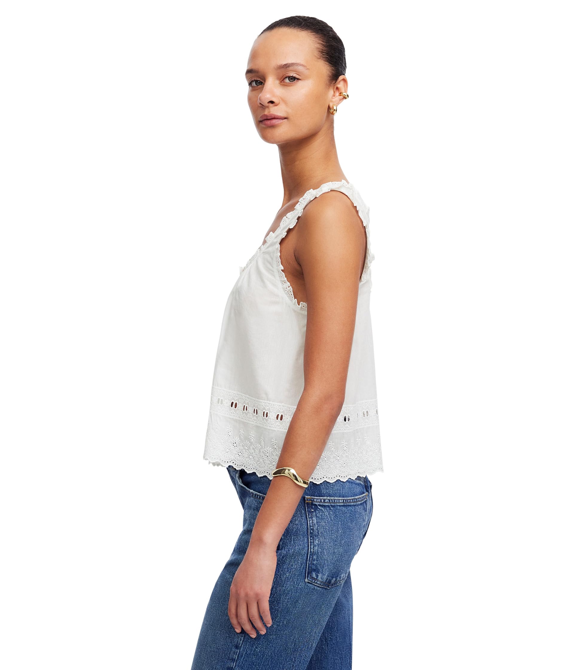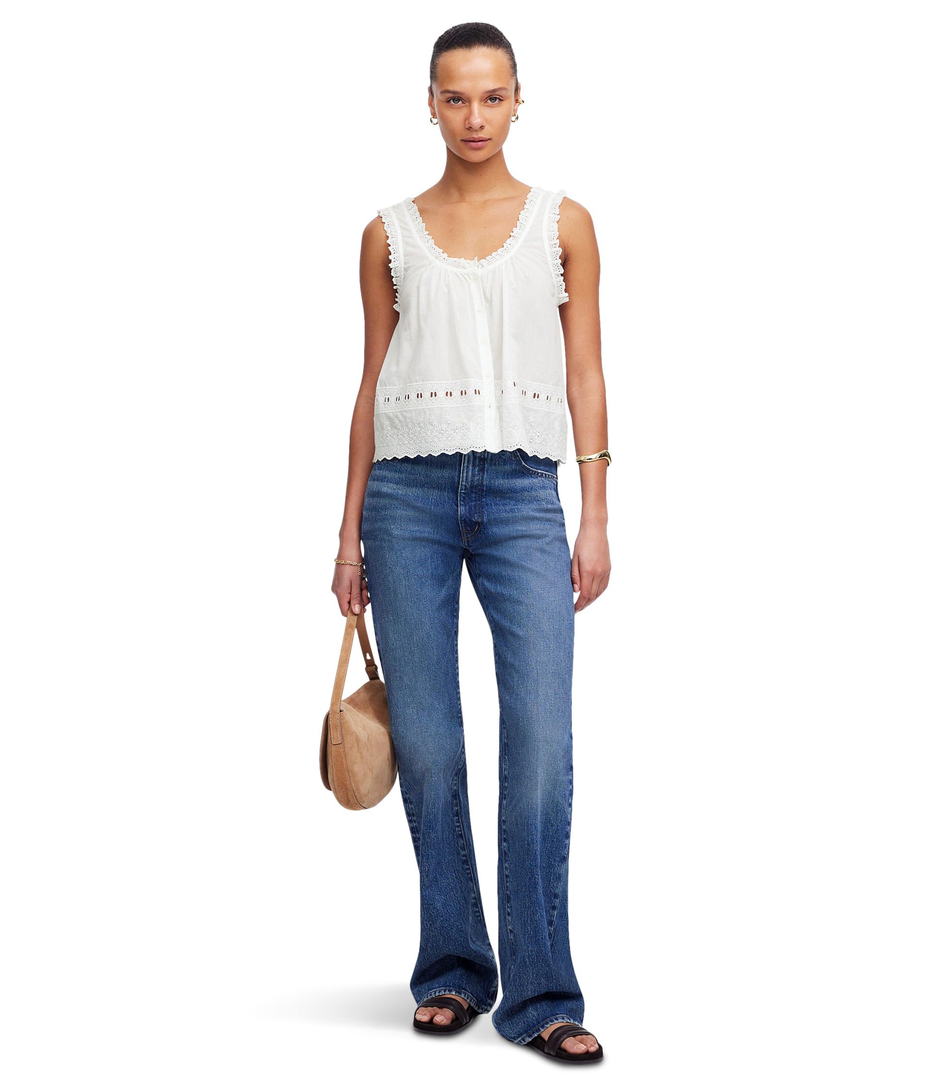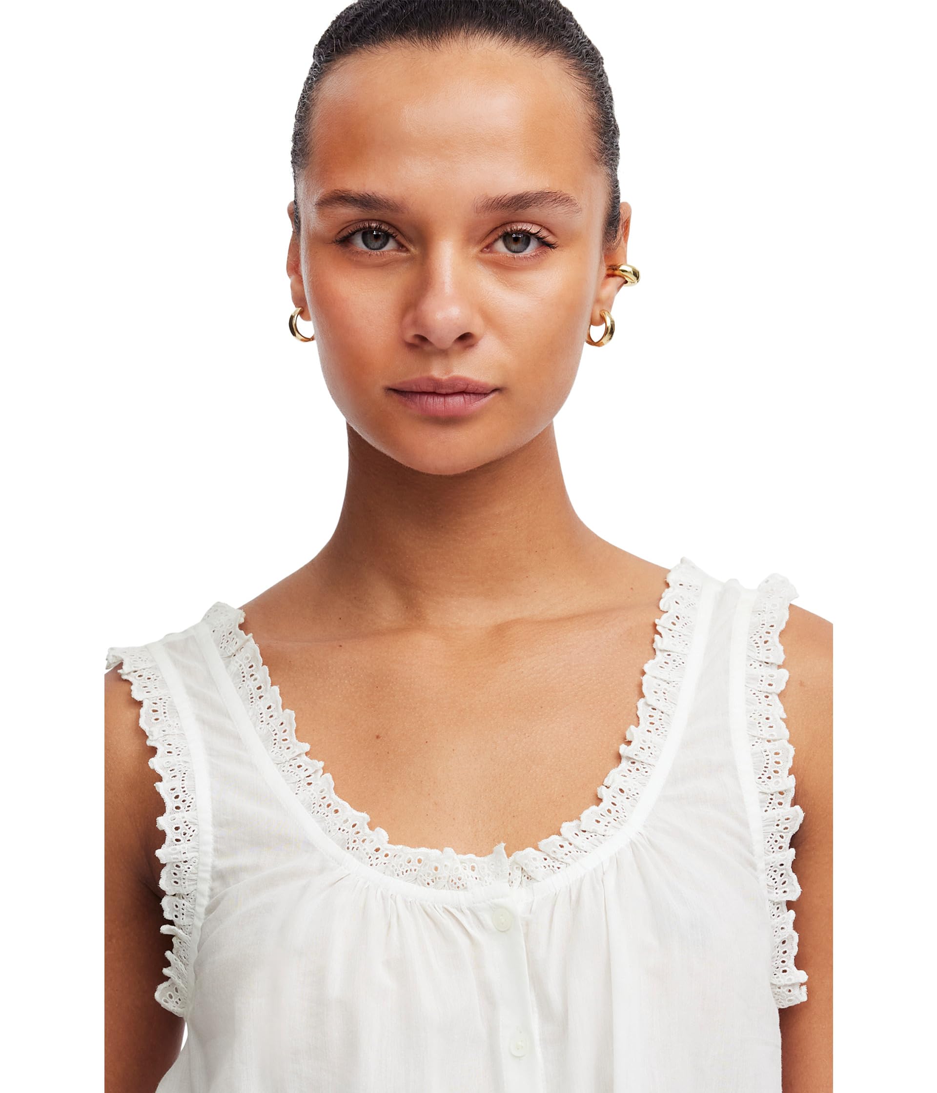 • Приготовьтесь отправиться за покупками или провести день на пляже в стильном и дышащем топе Madewell Jenny из хлопчатобумажной вискозной вуали. Пуловер имеет округлый вырез и силуэт без рукавов с широкими фестончатыми бретелями, подчеркивающими отделку.
