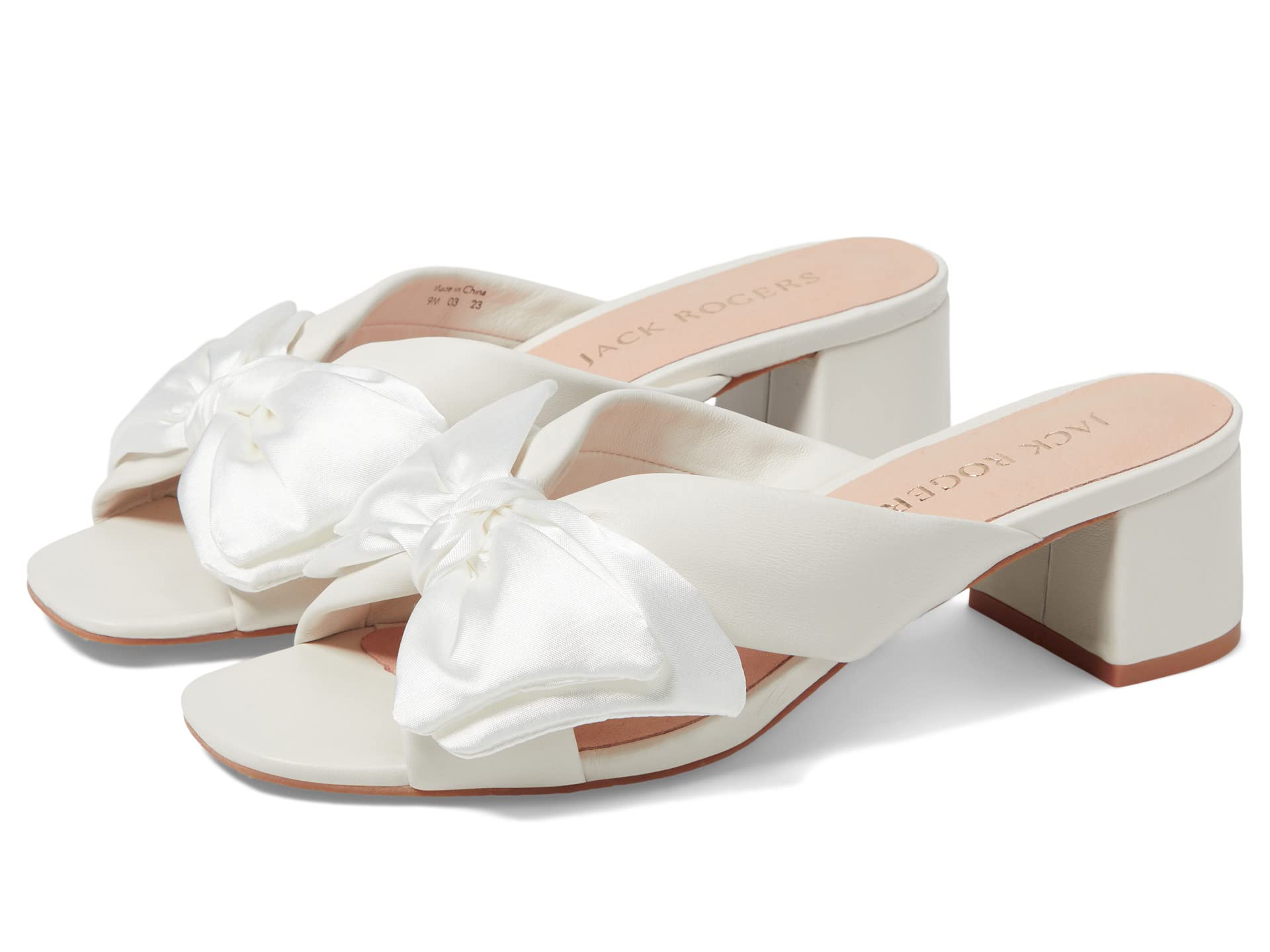 • Квадратный носок спереди дополняет образ туфель Jack Rogers Debra Mid Heels. Верхняя часть украшена блестящим атласным бантом, который придает элегантный и стильный силуэт и добавляет уникальный штрих к вашему образу.