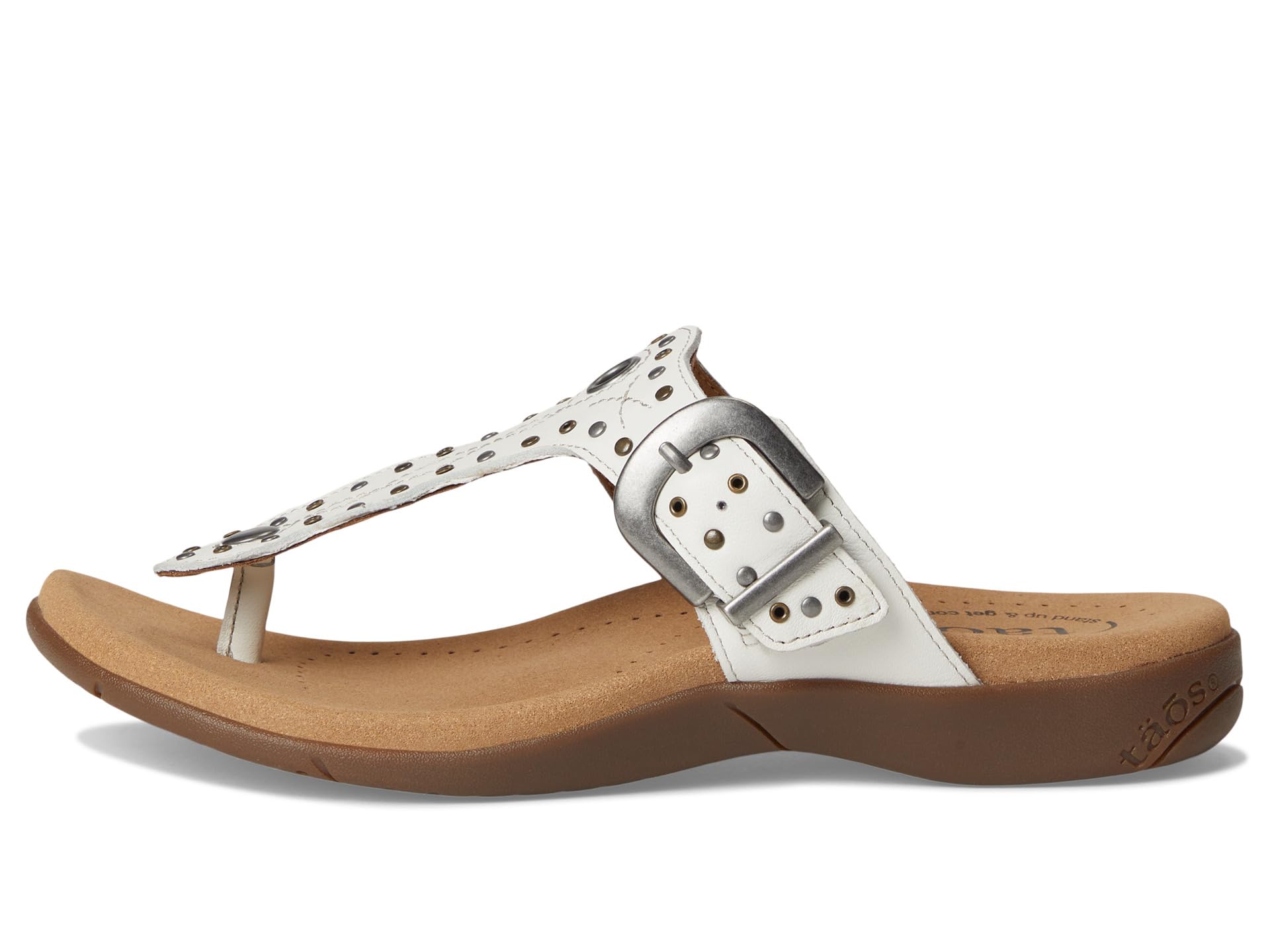 • Сандалии Taos Footwear Flash с очаровательной вышивкой, изящными заклепками, люверсами и регулируемой пряжкой, выполненной под старину, обладают достаточным количеством шика, чтобы дополнить любой наряд! Они оснащены без застежек, стелькой Soft Support с великолепной поддержкой свода стопы и охлаждающей полиуретановой стелькой Recovery Foam, покрытой микрофиброй. Эти сандалии с Т-образным ремешком изготовлены из натуральной кожи с подкладкой из микрофибры. Они настолько удобны, что вам не захочется их снимать.